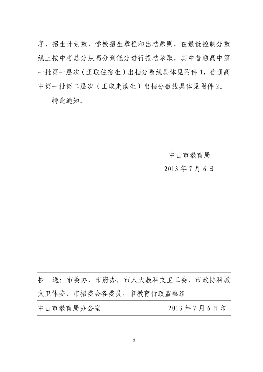 2013廣東中考分數(shù)線:中山中考第一批次.docx