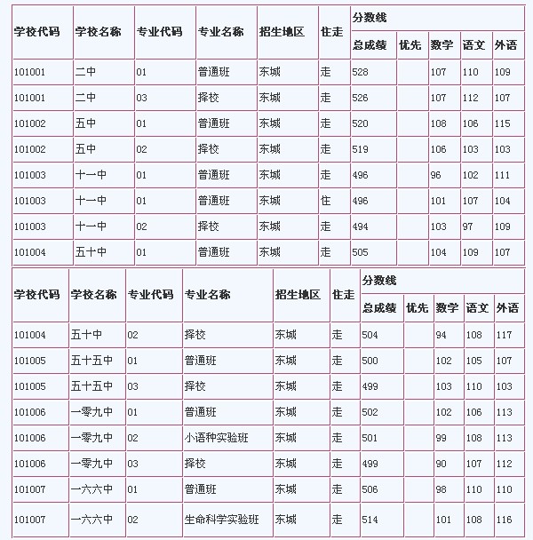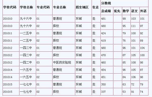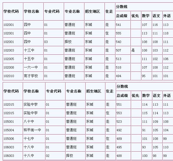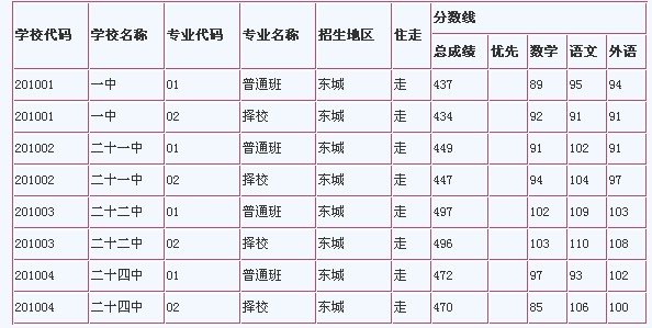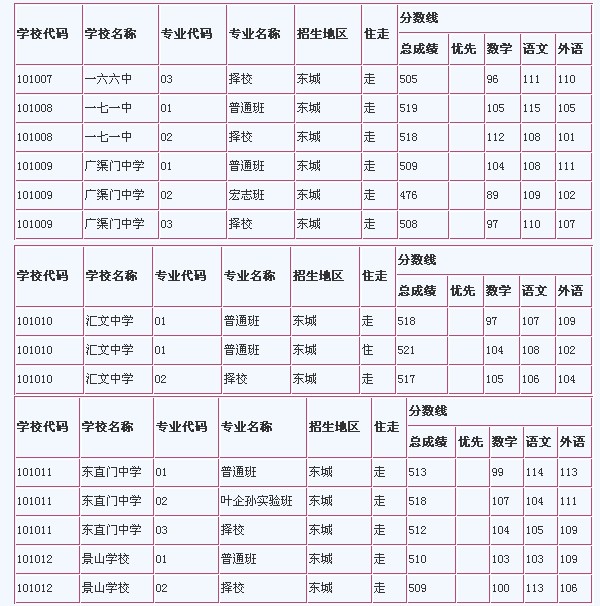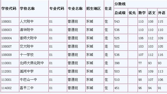 2013北京東城區(qū)中考錄取分?jǐn)?shù)線