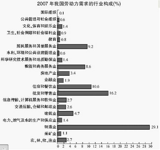 13、下列關(guān)于2007年我國(guó)勞動(dòng)力需求構(gòu)成的說(shuō)法不正確的是( )。