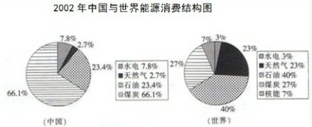 從中國(guó)能源消費(fèi)結(jié)構(gòu)圖可以看到煤炭所占比例,為66.1%,故正確答案為A。