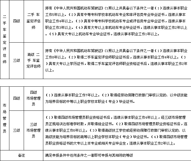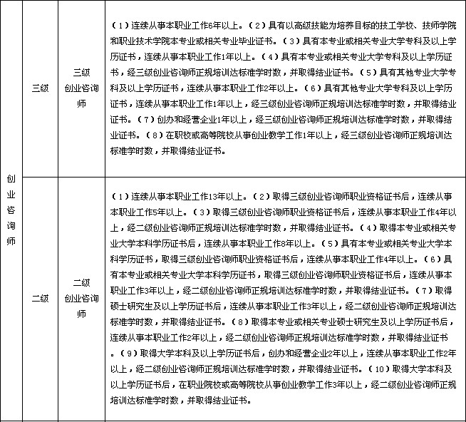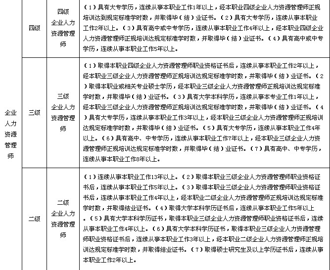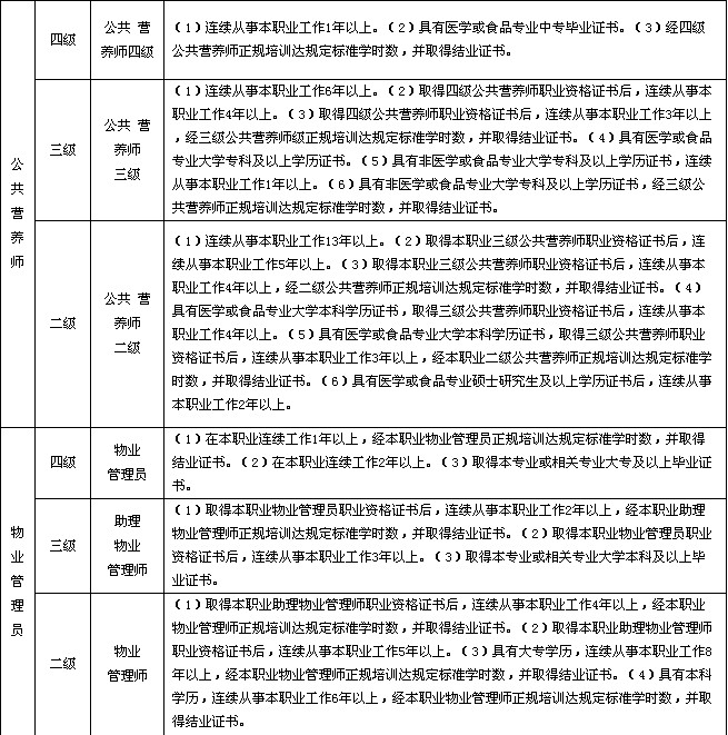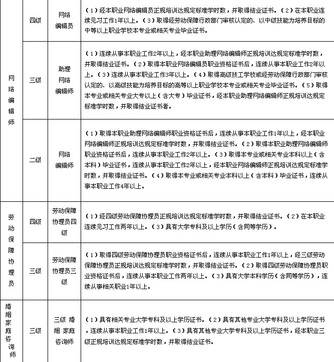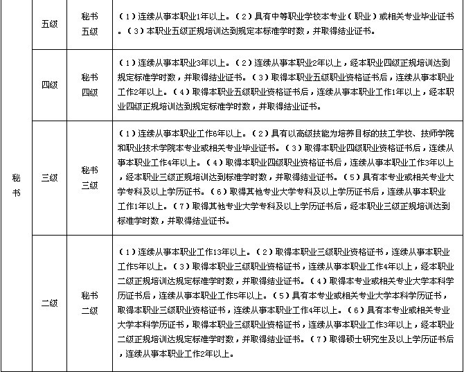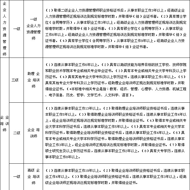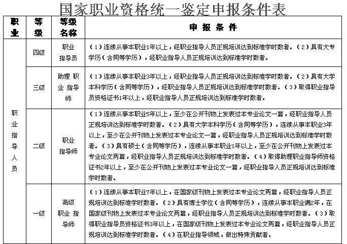 國家職業(yè)資格統(tǒng)一鑒定申報條件表