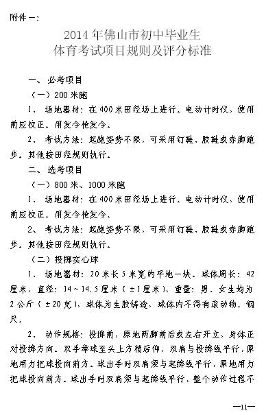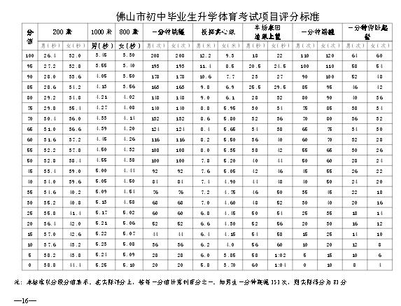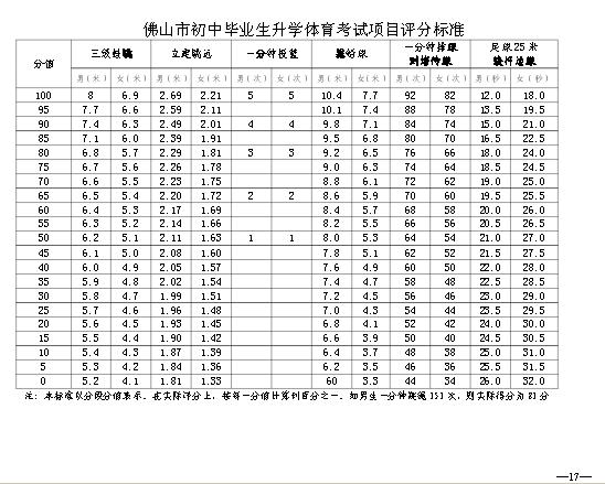 2014年廣東佛山順德中考體育評分標準表