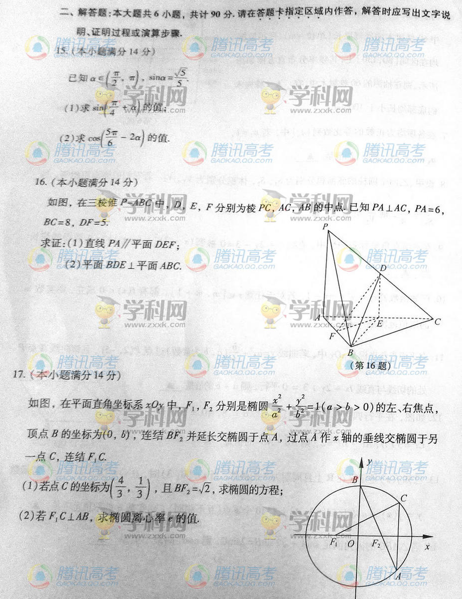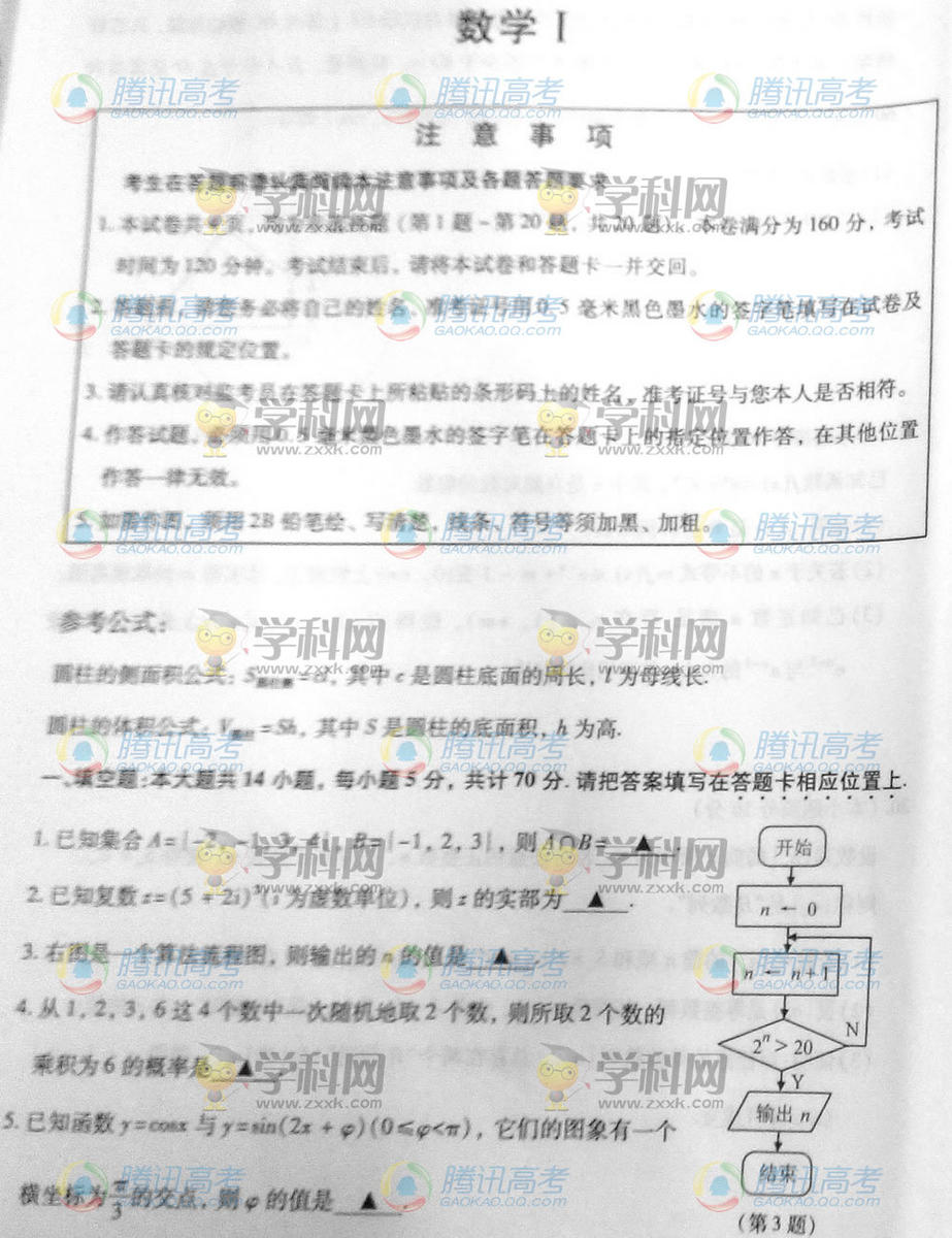 2014江蘇高考數(shù)學試題(騰訊版).docx