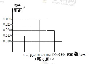 6. 設(shè)抽測的樹木的底部周長均在區(qū)間[80,130]上,其頻率分布直方圖如圖所示,則在抽測的60株樹木中,有 ▲ 株樹木的底部周長小于100cm.