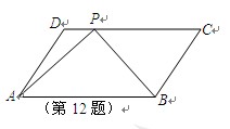 12. 如圖,在平行四邊形 中,已知 , , , ,則 的值是 ▲ .