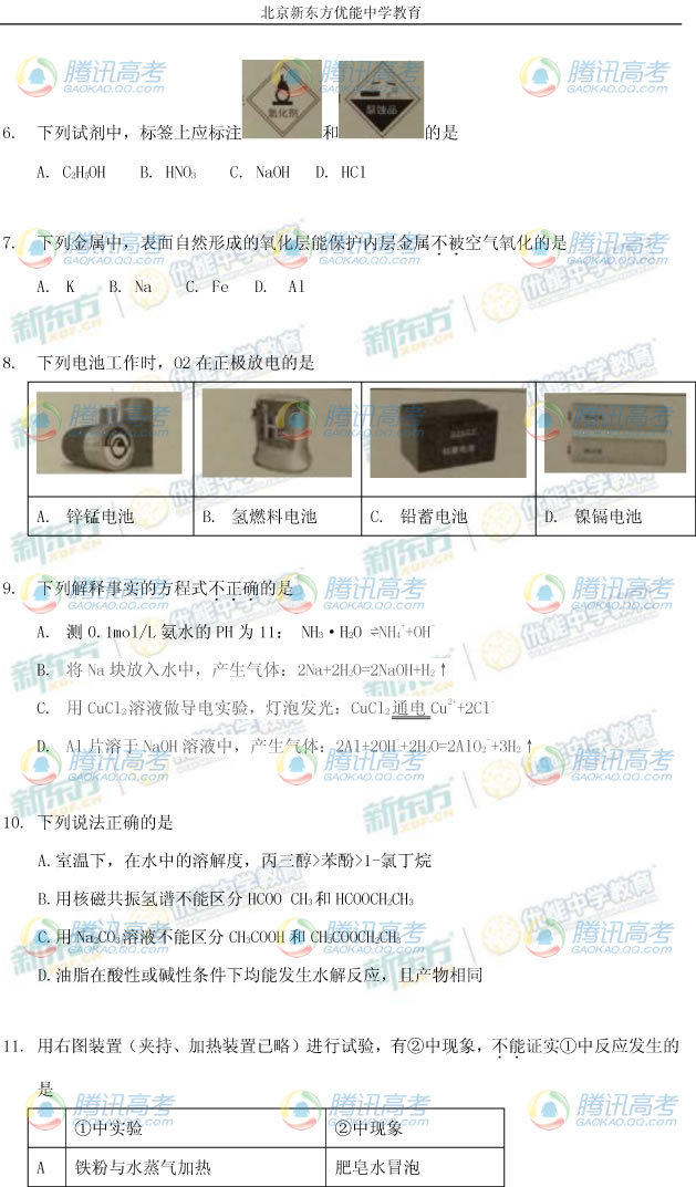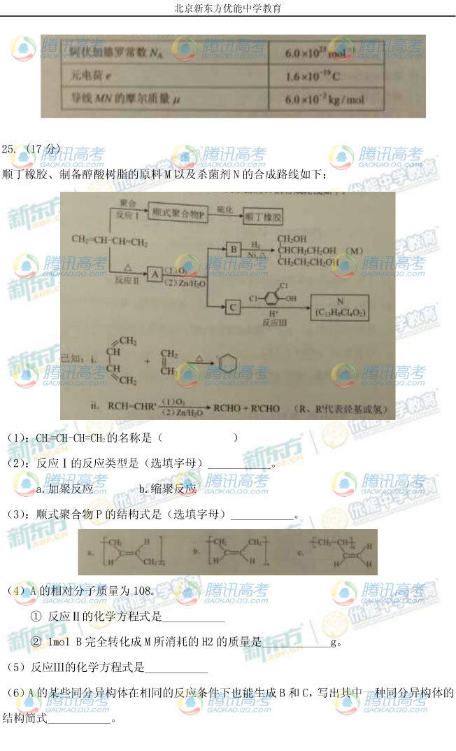2025年北京普通高中學業(yè)水平選擇性考試化學真題及答案