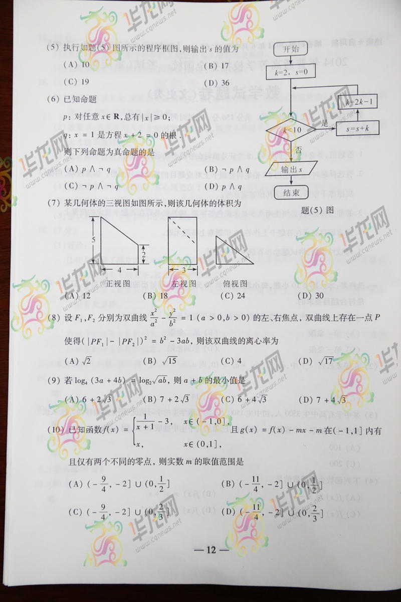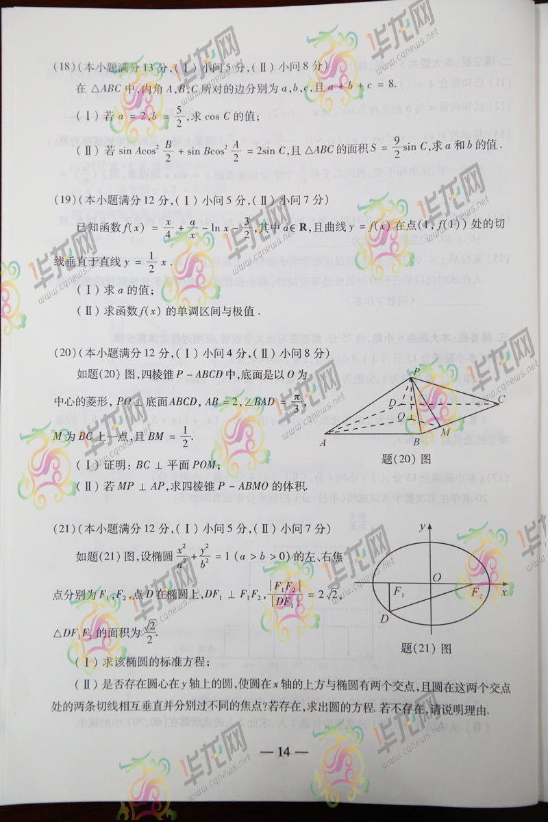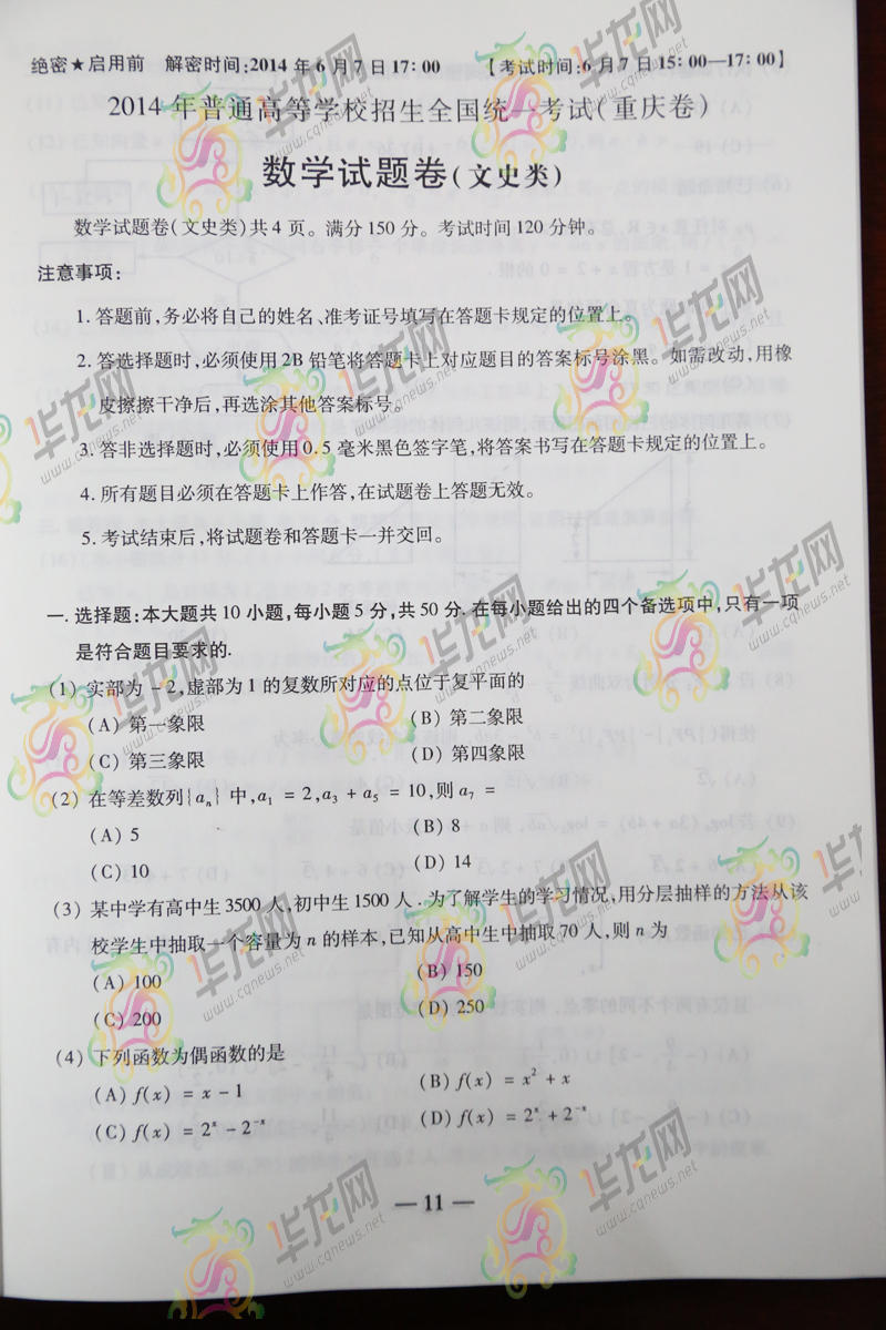 2014年重慶高考數(shù)學(xué)真題:文數(shù)(騰訊版)