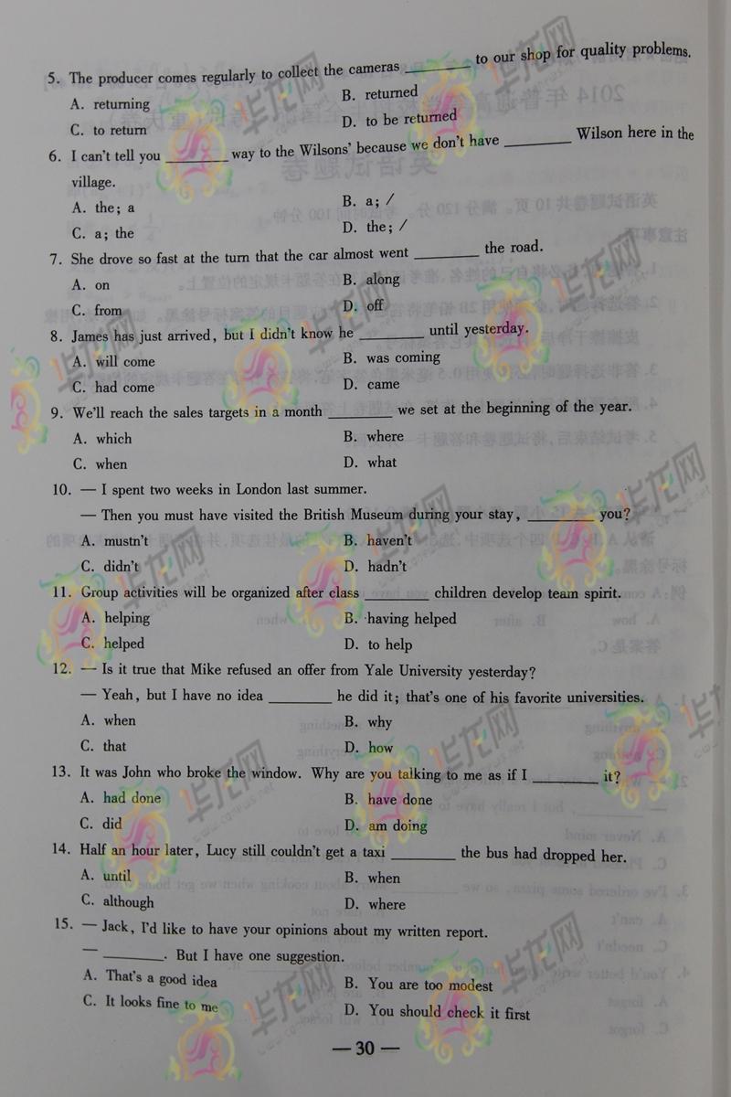 2014重慶高考英語試題(騰訊版)