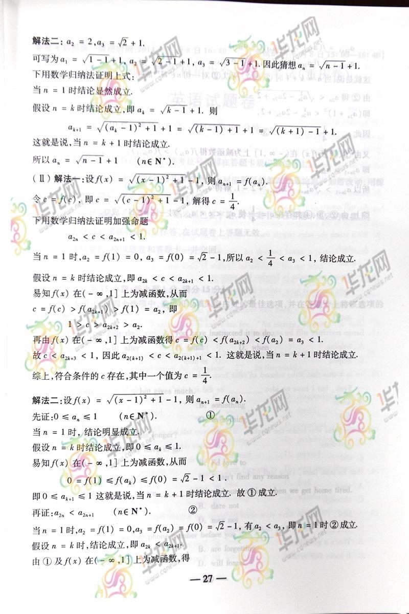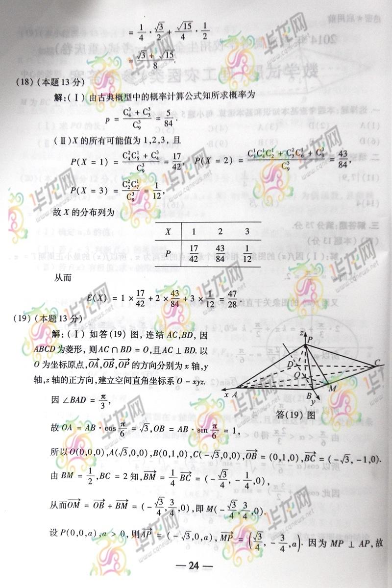 2014重慶高考數(shù)學(xué)答案:理數(shù)(騰訊版)