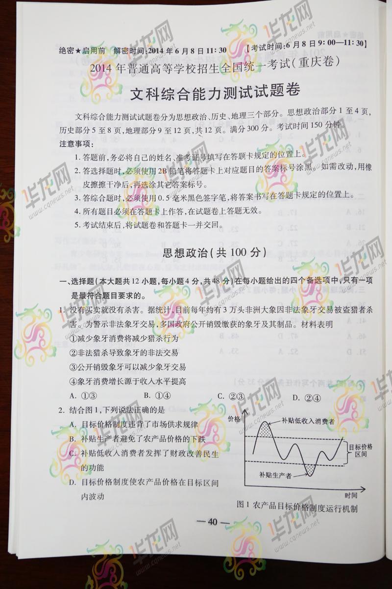 2014重慶高考文綜試題(騰訊版).docx