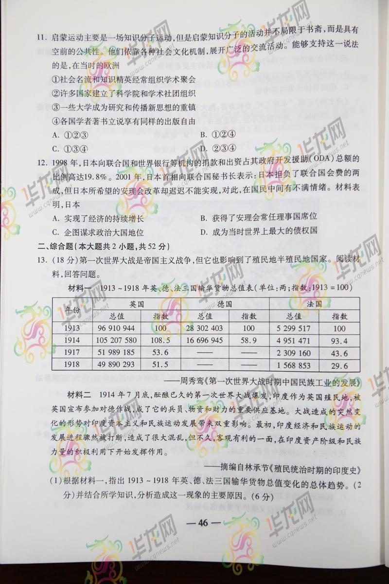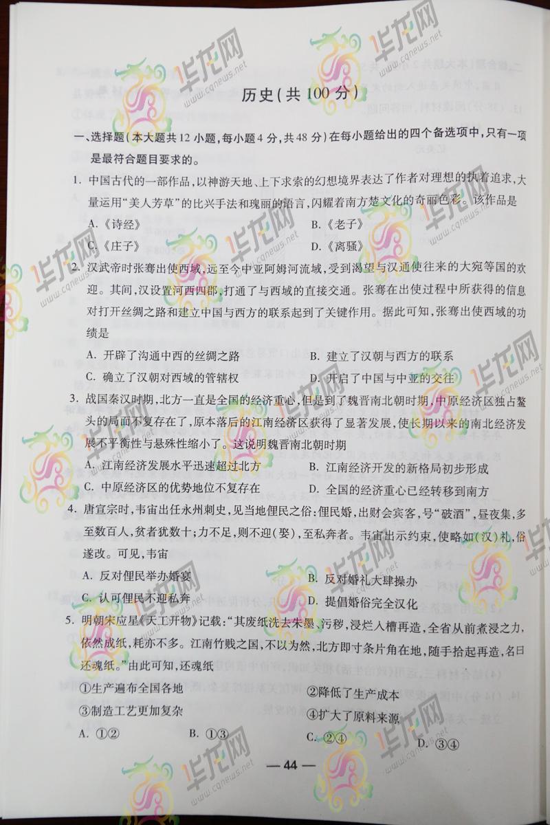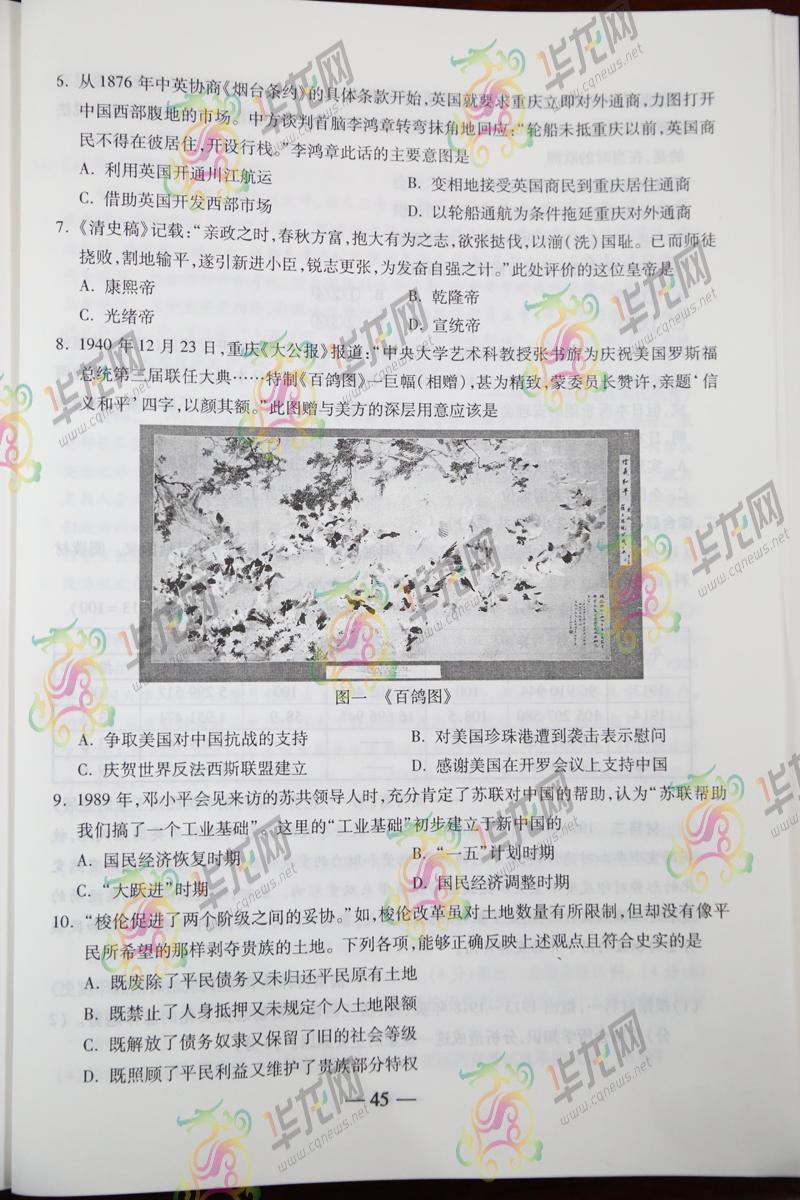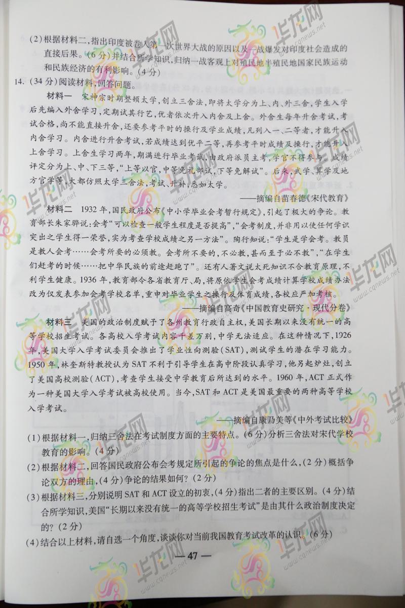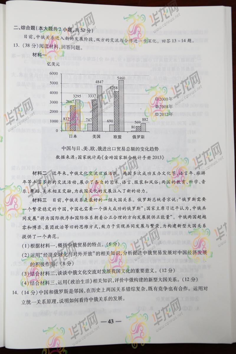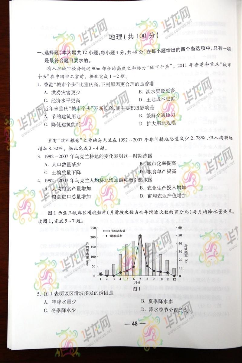2014重慶高考文綜試題(騰訊版)