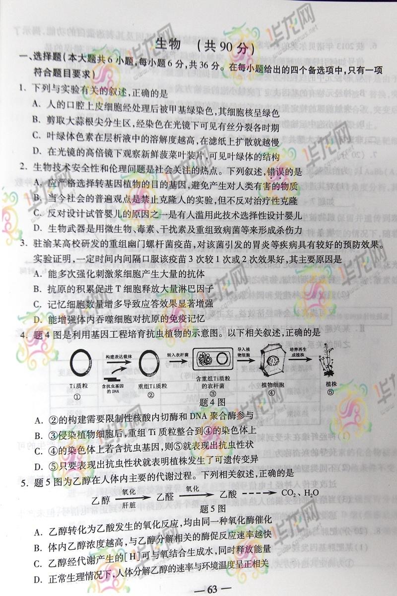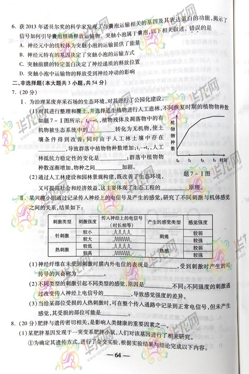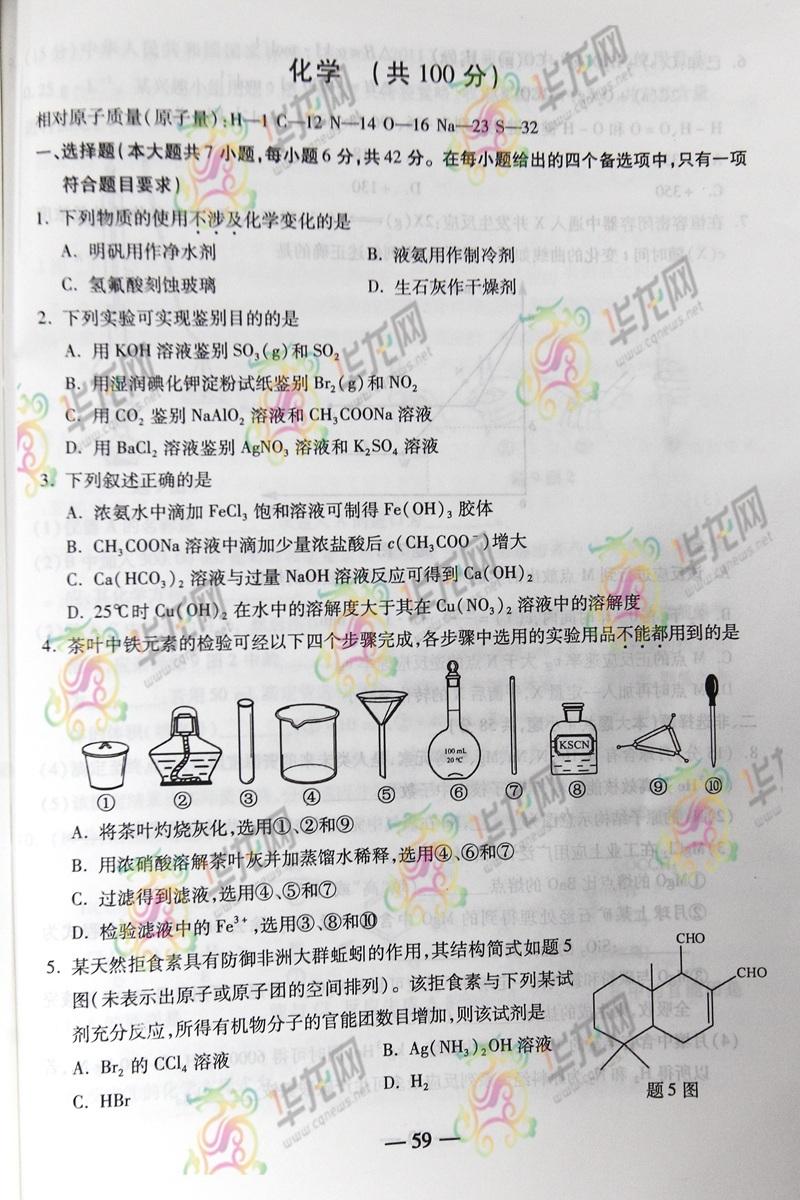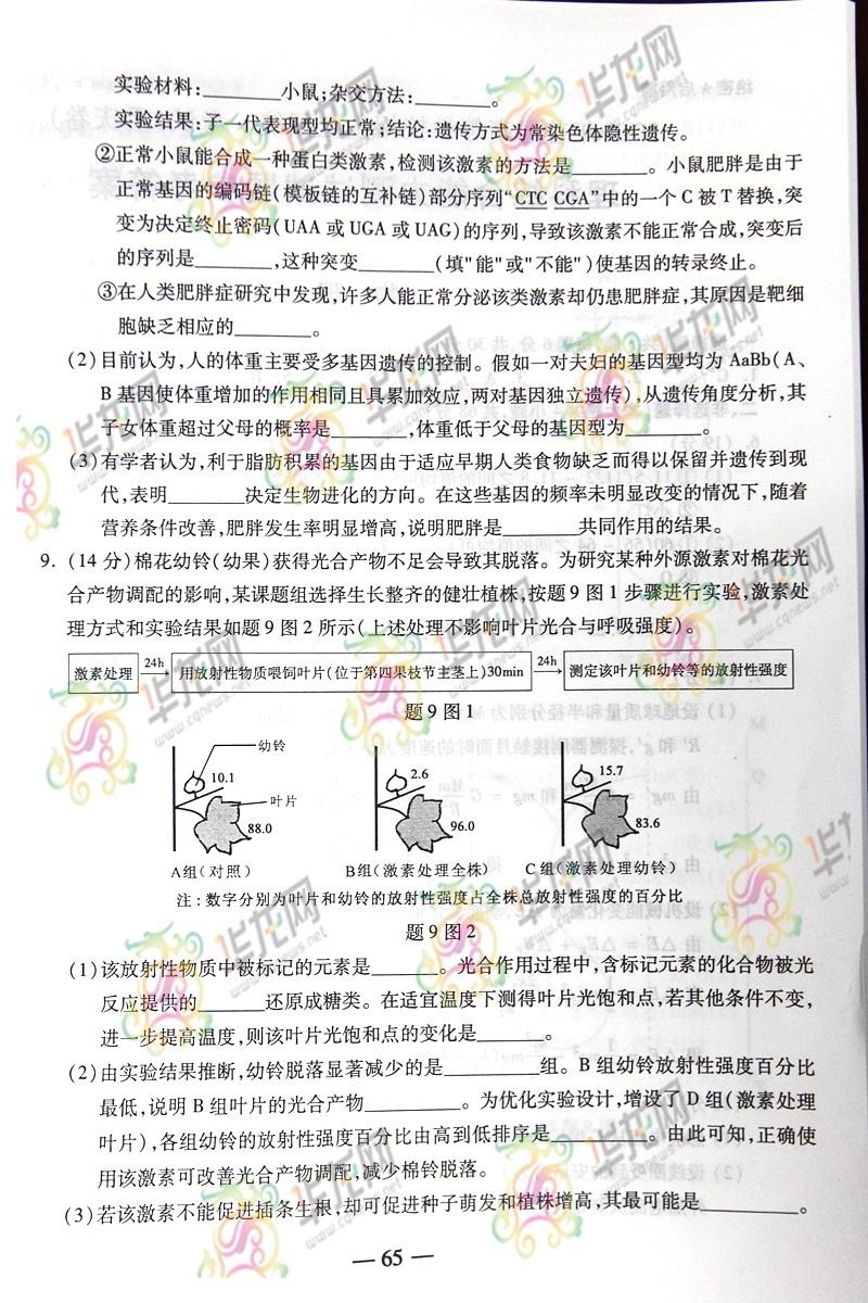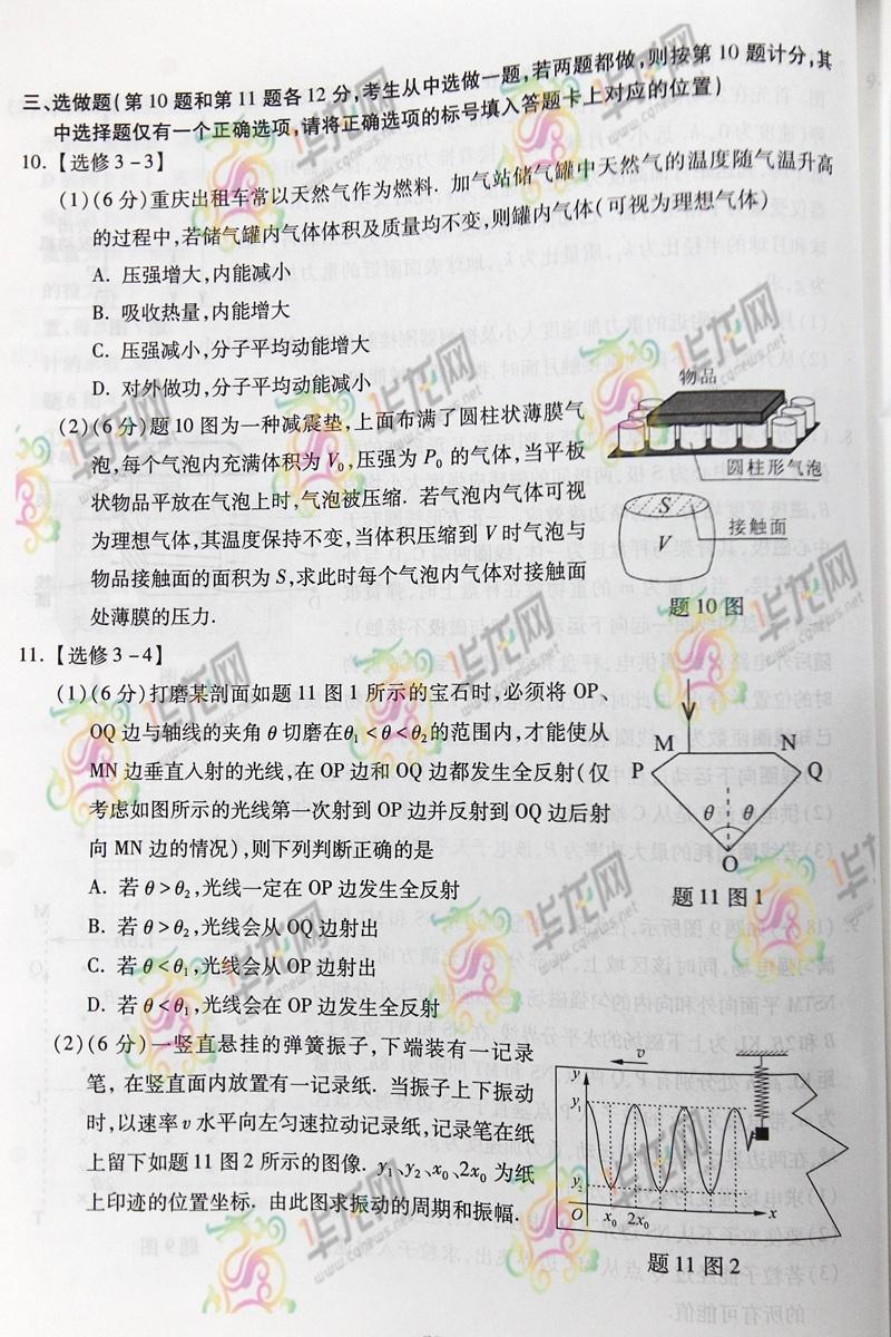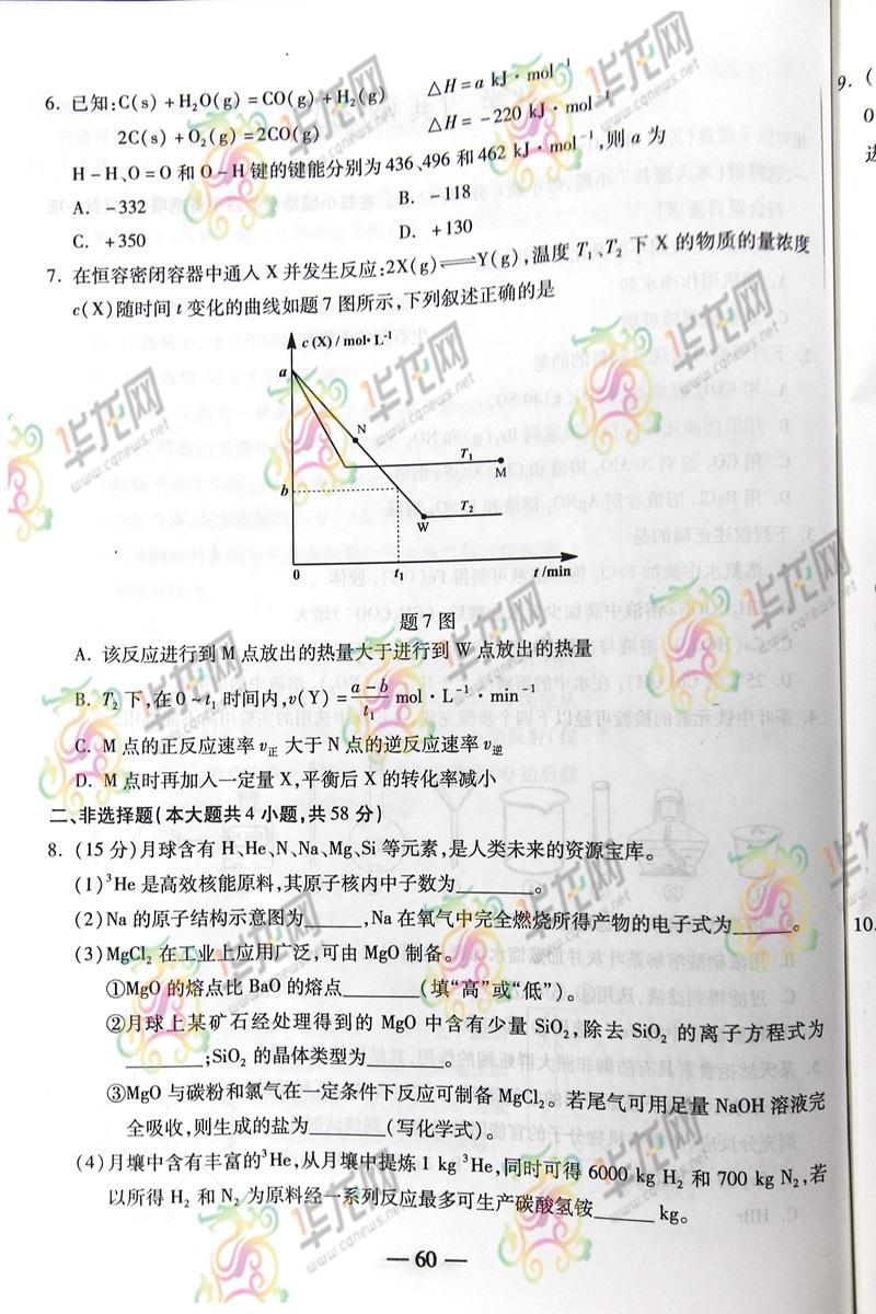 2014重慶高考理綜試題(完整版)