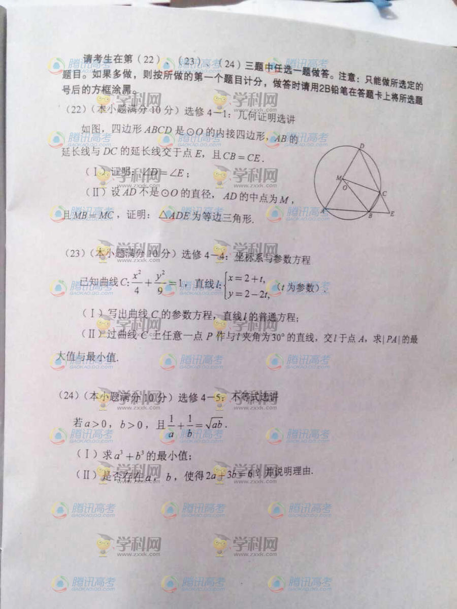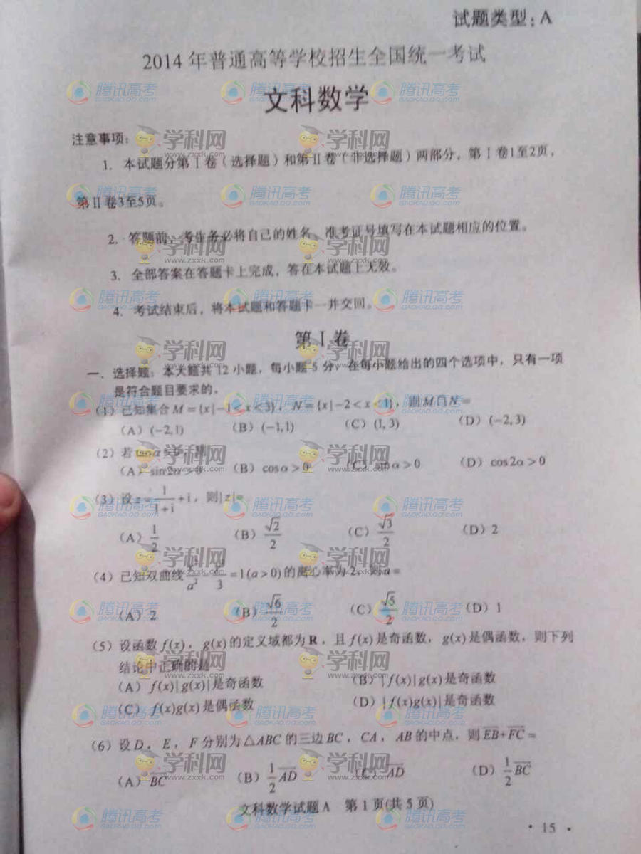 2014云南高考數(shù)學(xué)真題:文數(shù)(騰訊版)
