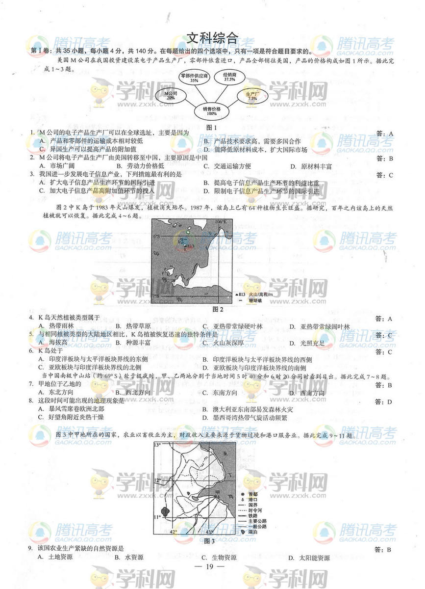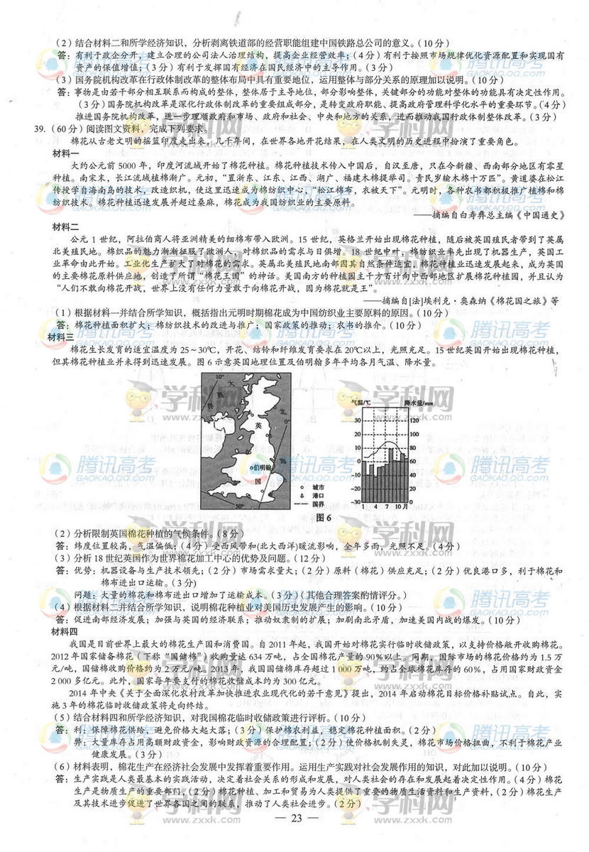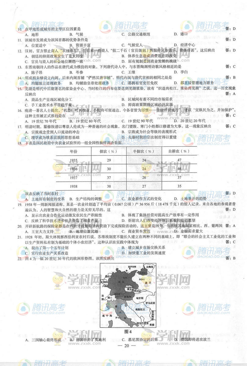 2014廣西高考文綜答案(騰訊版)