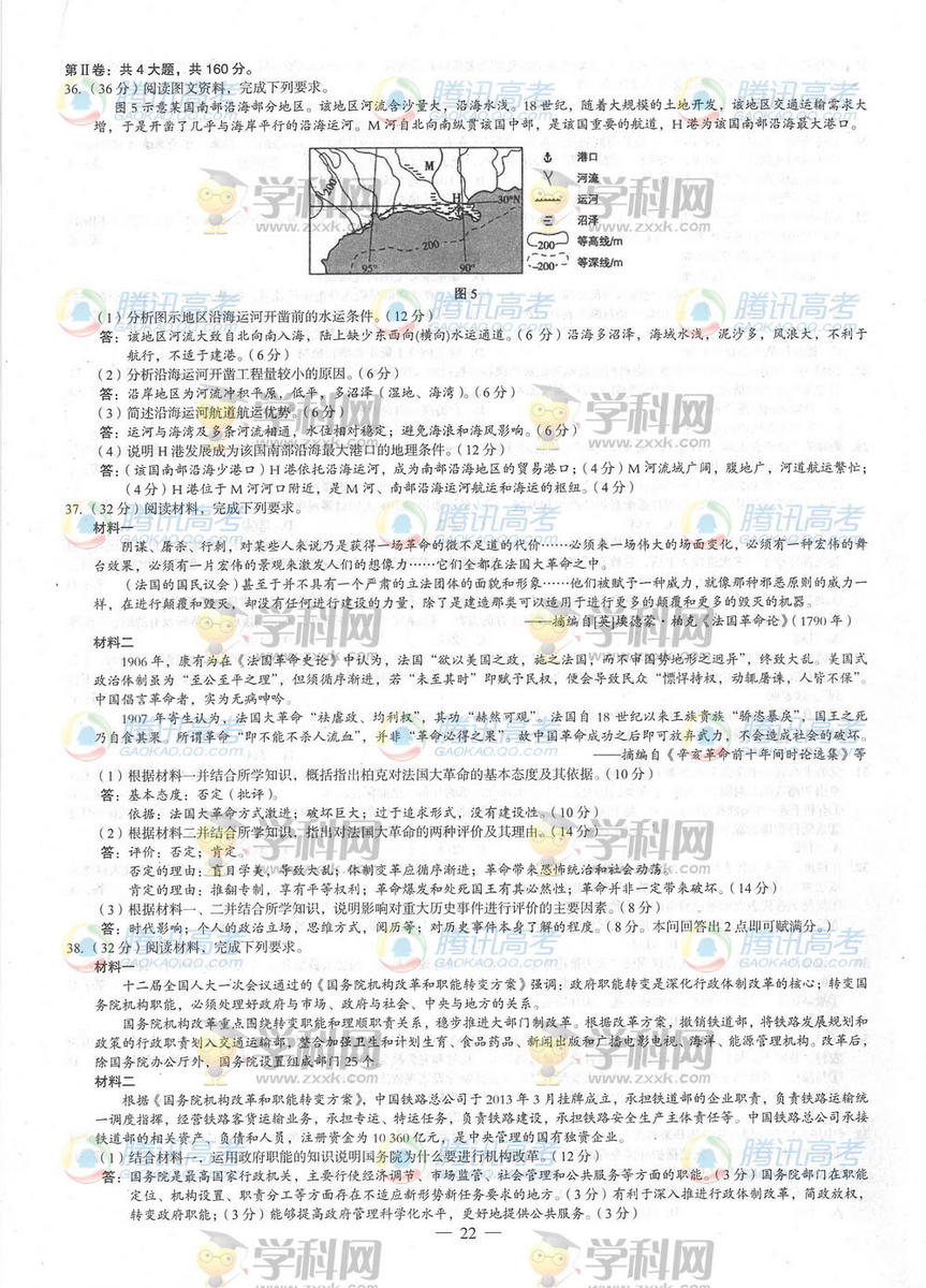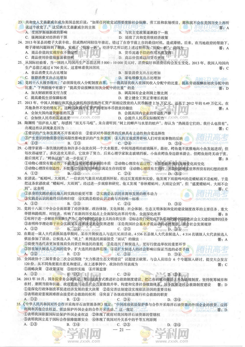 2014廣西高考文綜答案(騰訊版).docx
