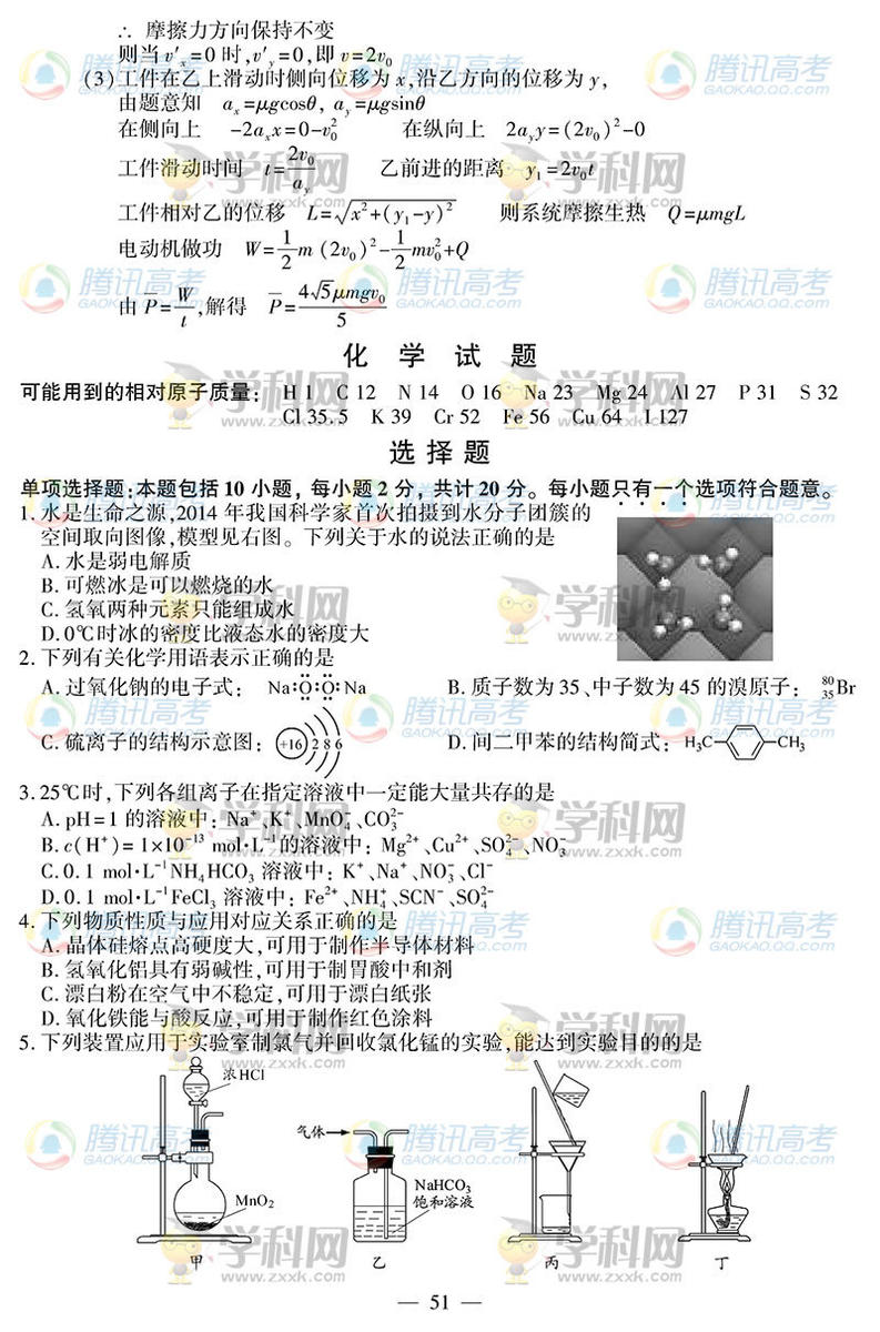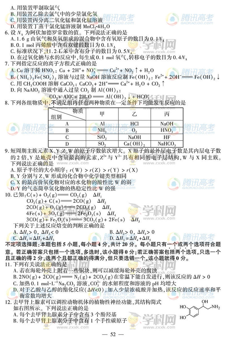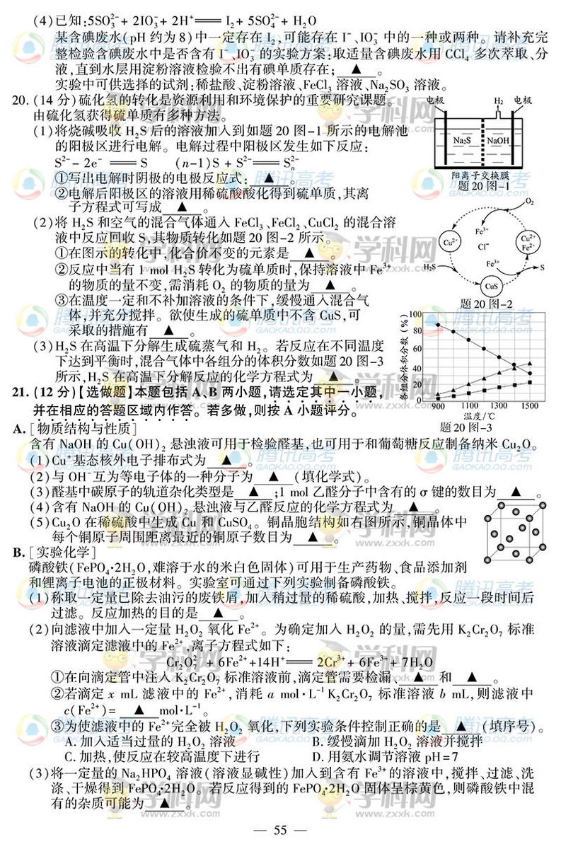 2014江蘇化學(xué)高考試題(騰訊版)