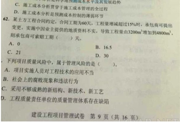 2014年一級(jí)建造師《項(xiàng)目管理》真題(部分圖片版一)