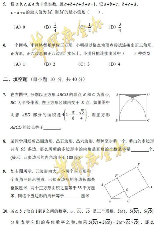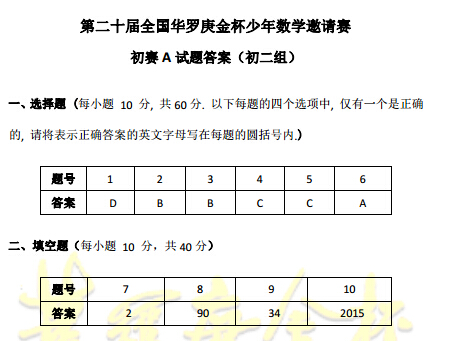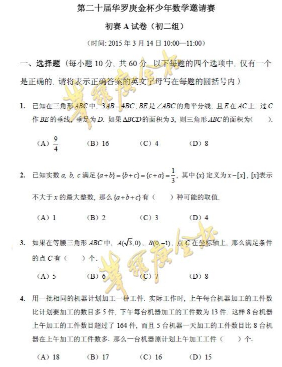 2015年第20屆華杯賽初賽數(shù)學(xué)A卷真題及答案(初二組)