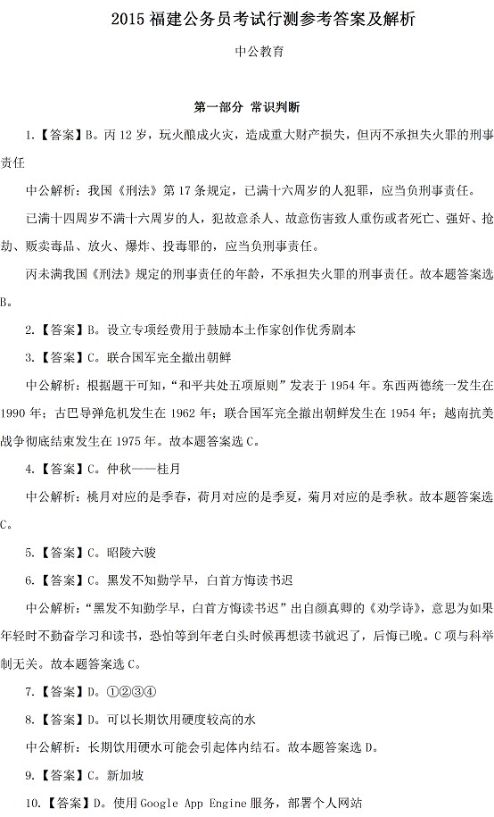 點(diǎn)擊查看>>2015年425公務(wù)員聯(lián)考真題及答案解析