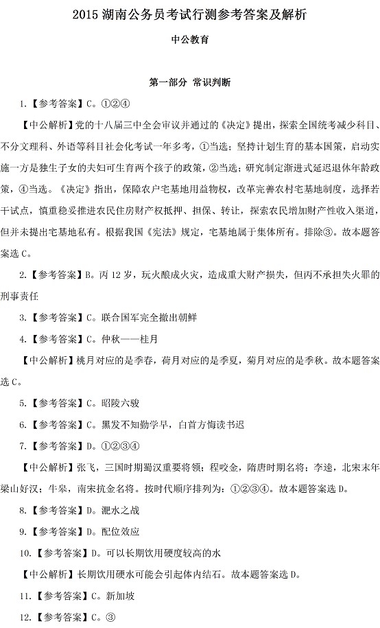 點擊查看>>2015年425公務(wù)員聯(lián)考真題及答案解析