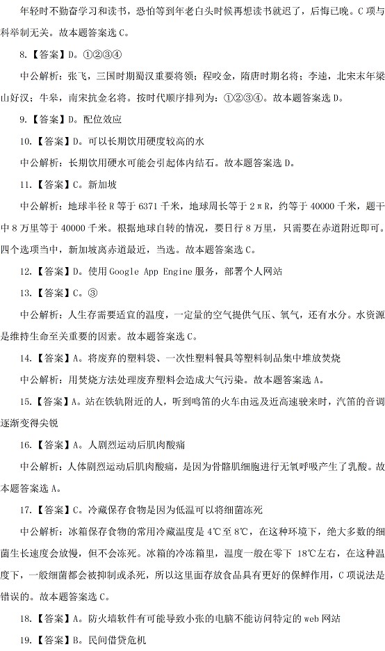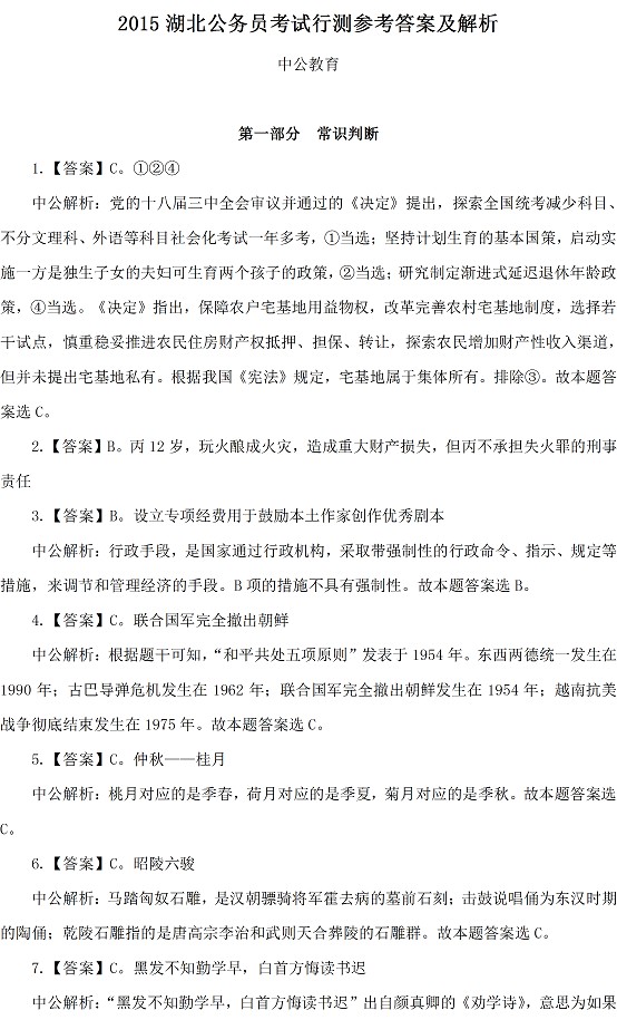 2015年湖北公務員行測考試答案:常識判斷