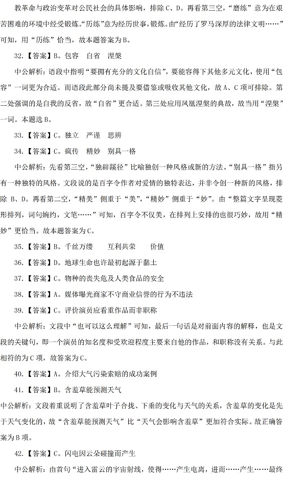 2015年貴州公務(wù)員考試行測(cè)答案:言語(yǔ)理解與表達(dá)