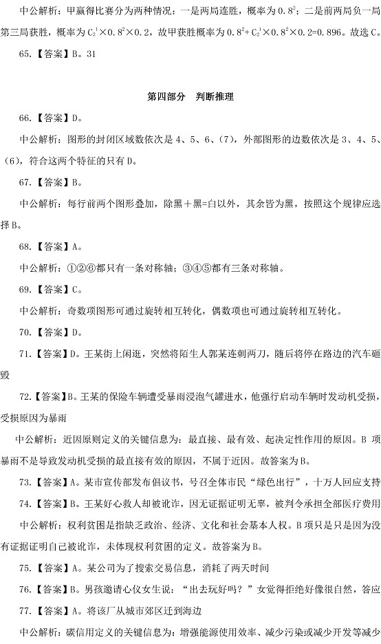 公務(wù)員考試答案:2015年貴州公務(wù)員行測數(shù)量關(guān)系考試答案
