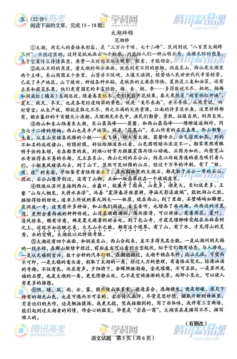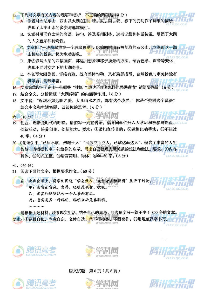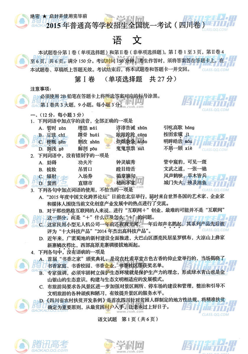 2015年四川高考語(yǔ)文試題(騰訊版)
