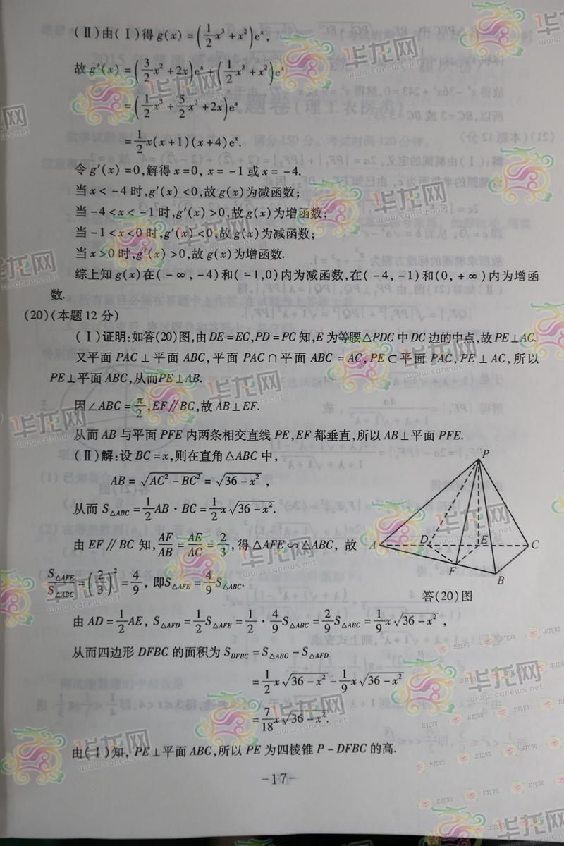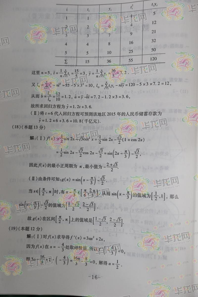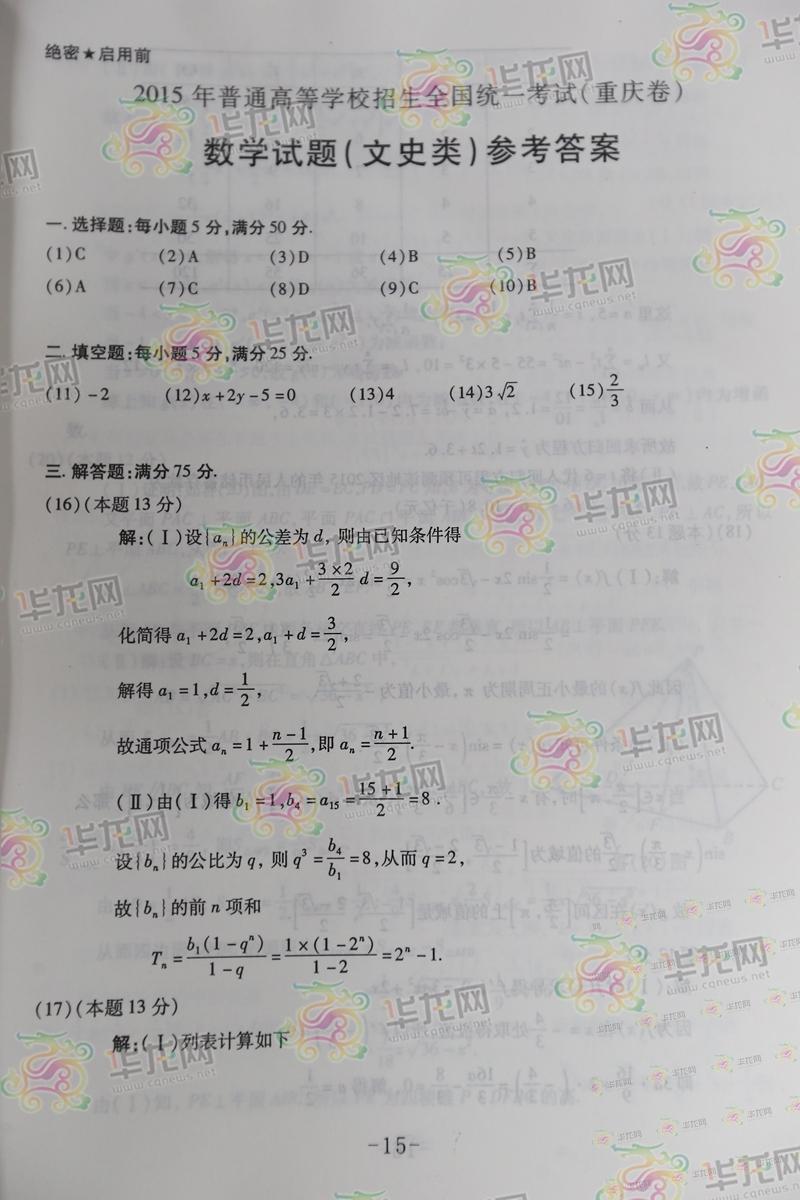 2015年重慶高考數(shù)學(xué)答案:數(shù)學(xué)文(完整版)