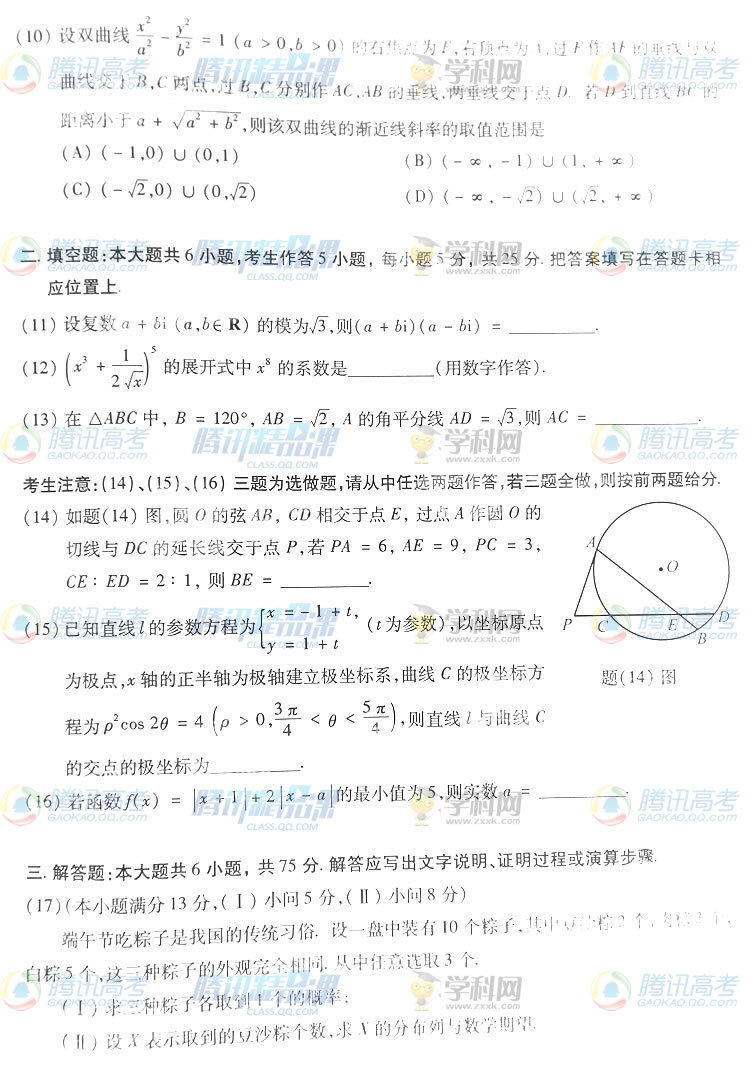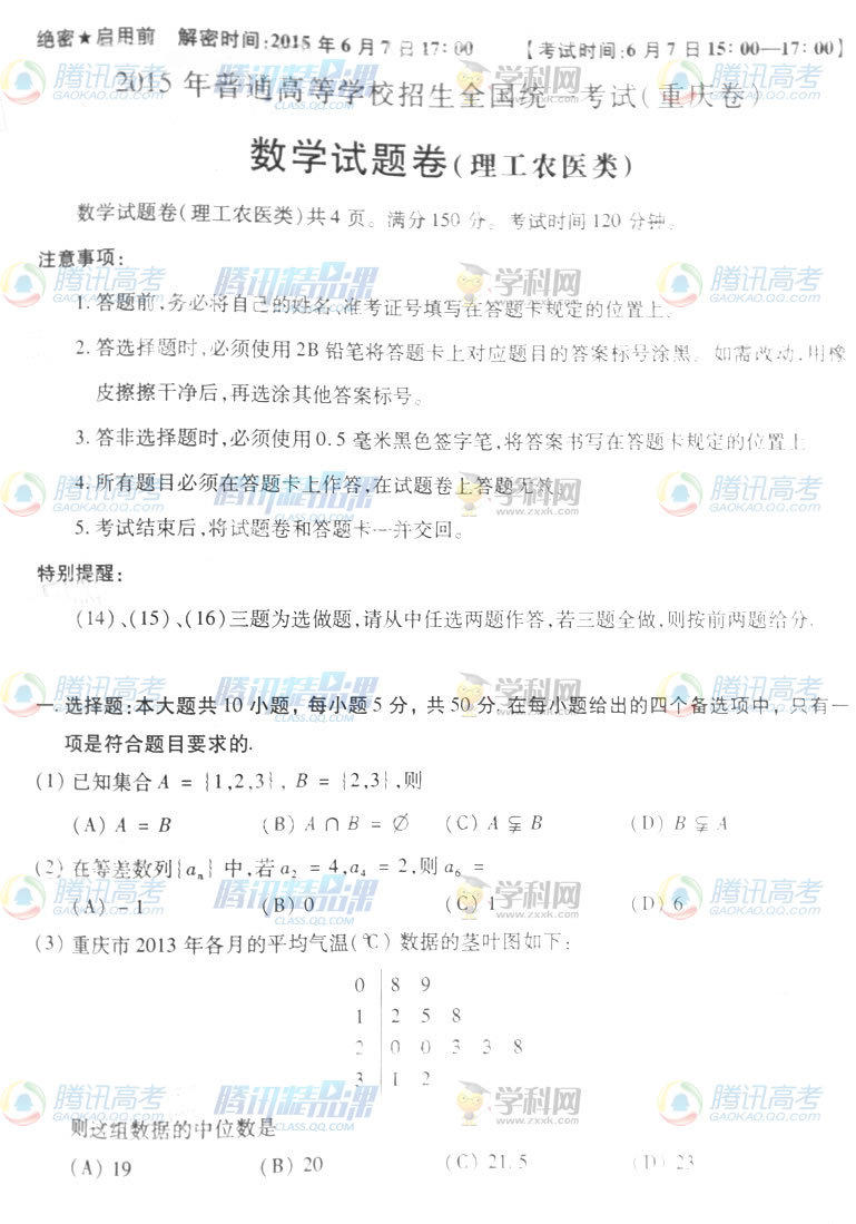 2015年重慶高考數(shù)學(xué)試題:數(shù)學(xué)理(圖片版)
