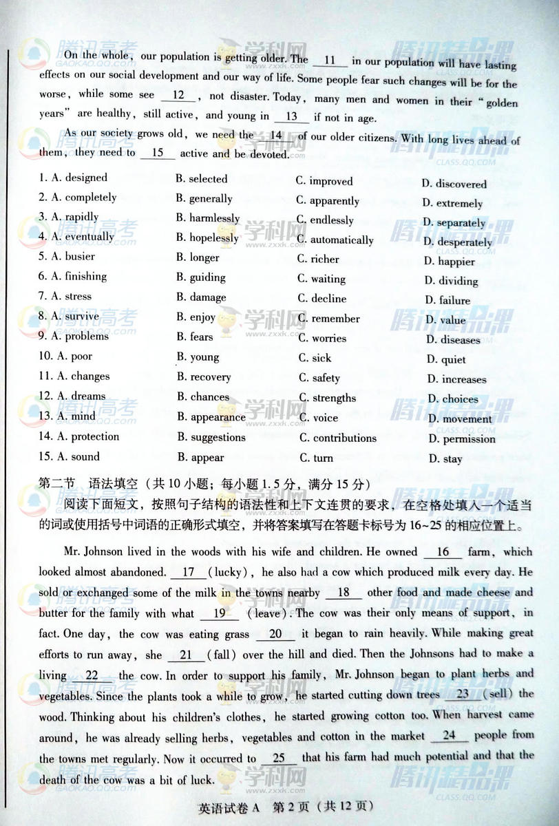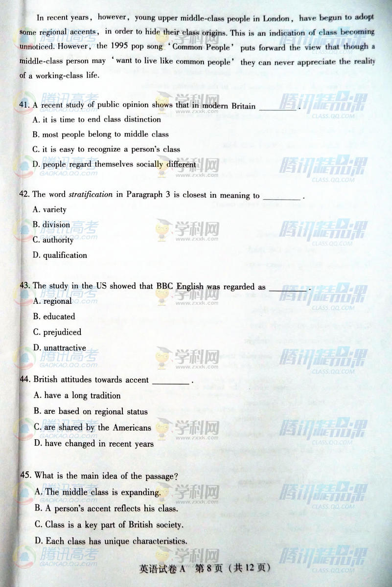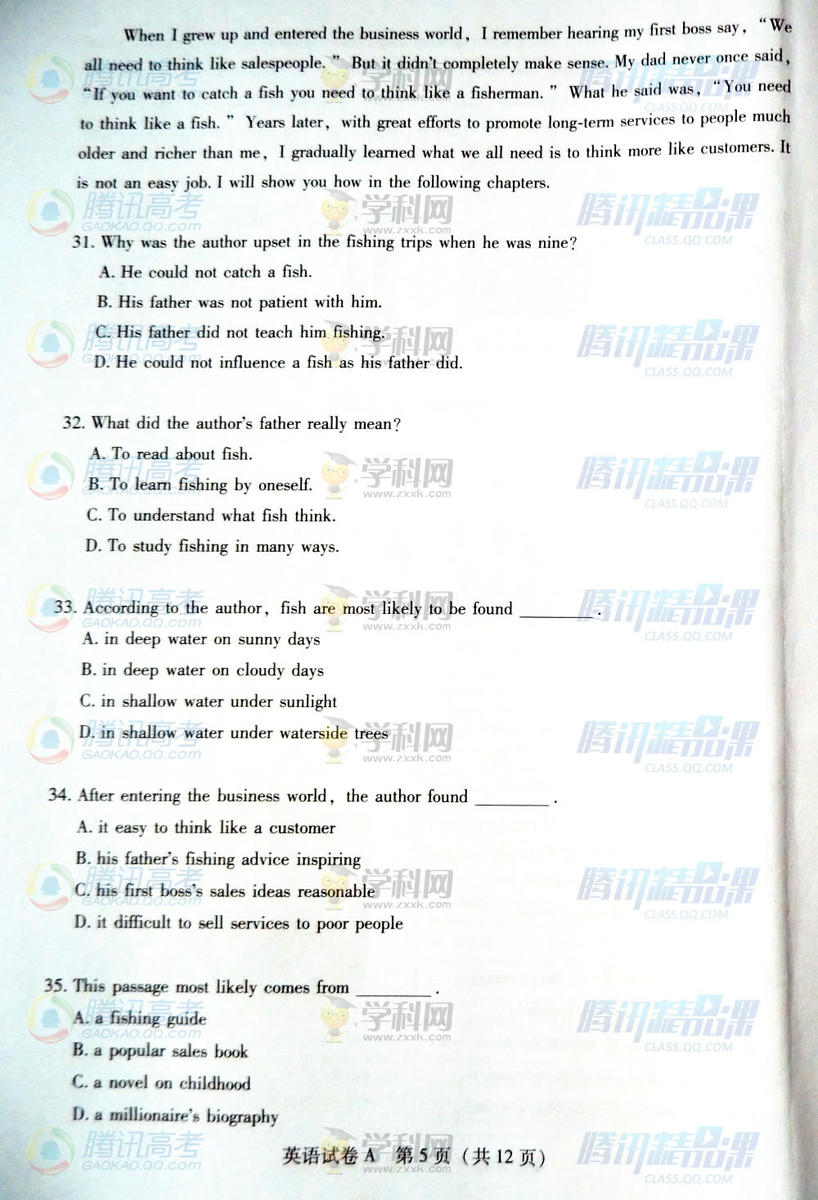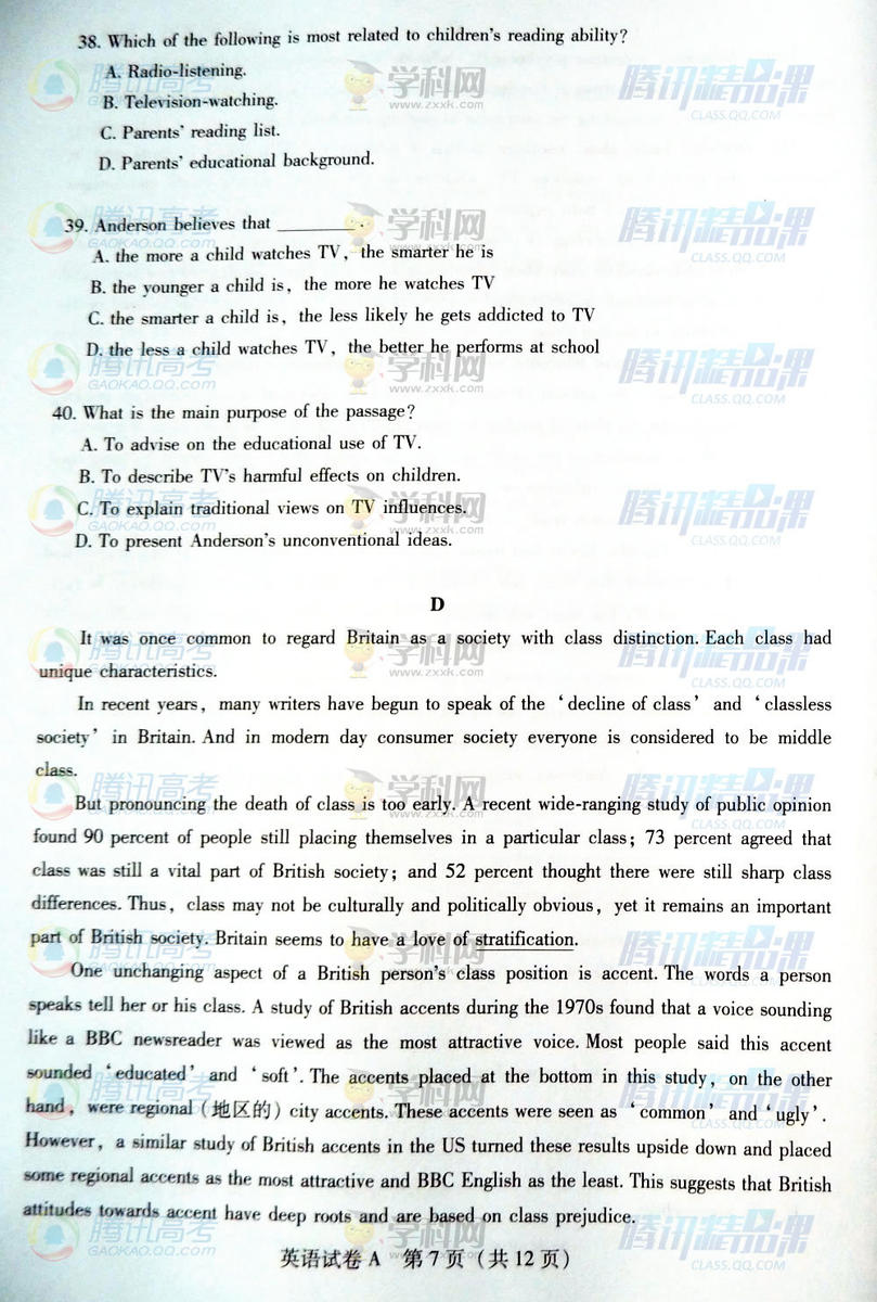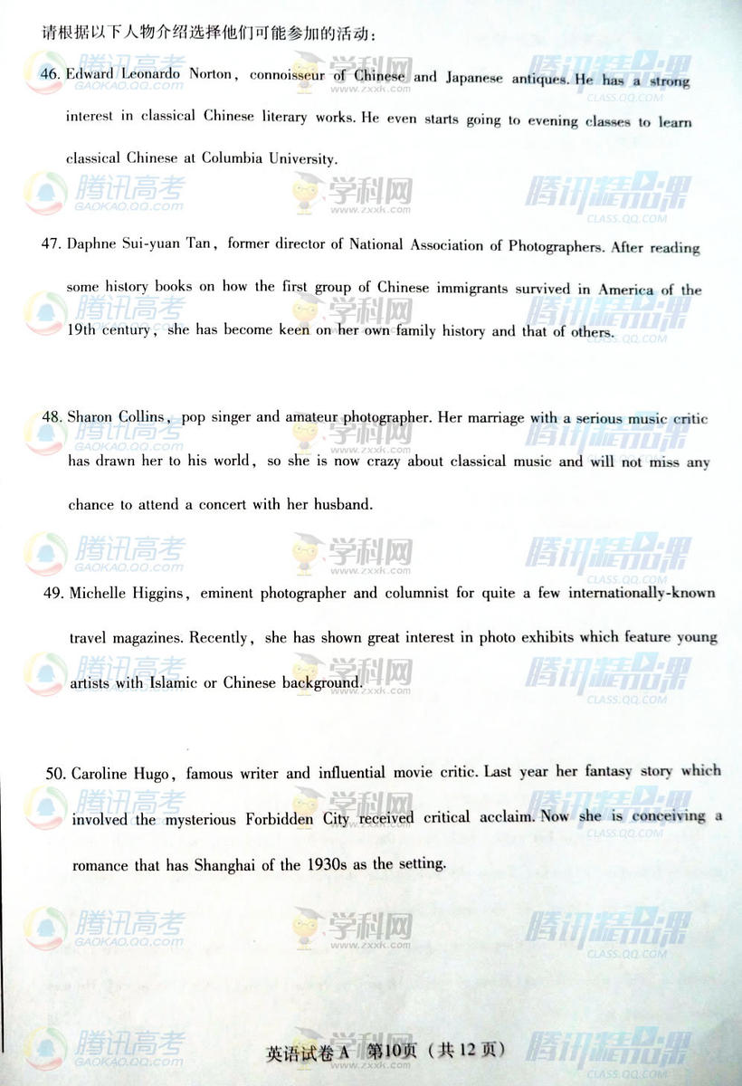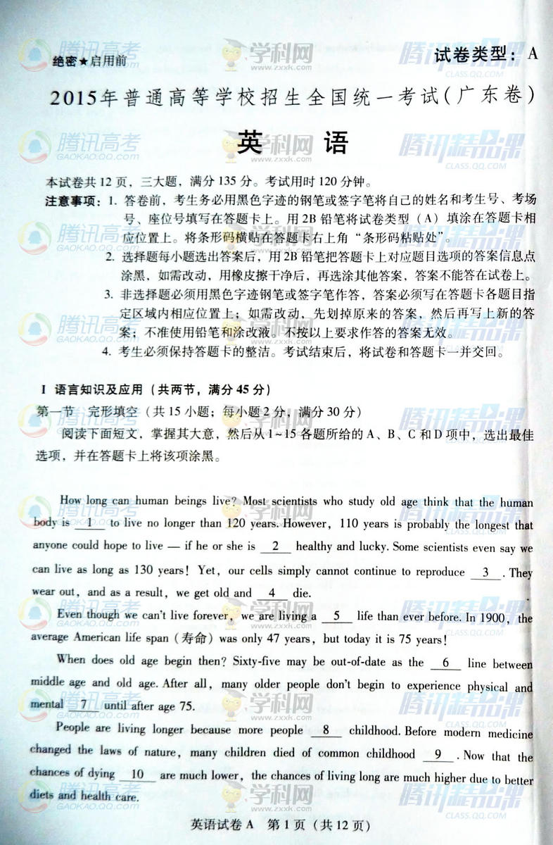2015年廣東高考英語試題(騰訊版)