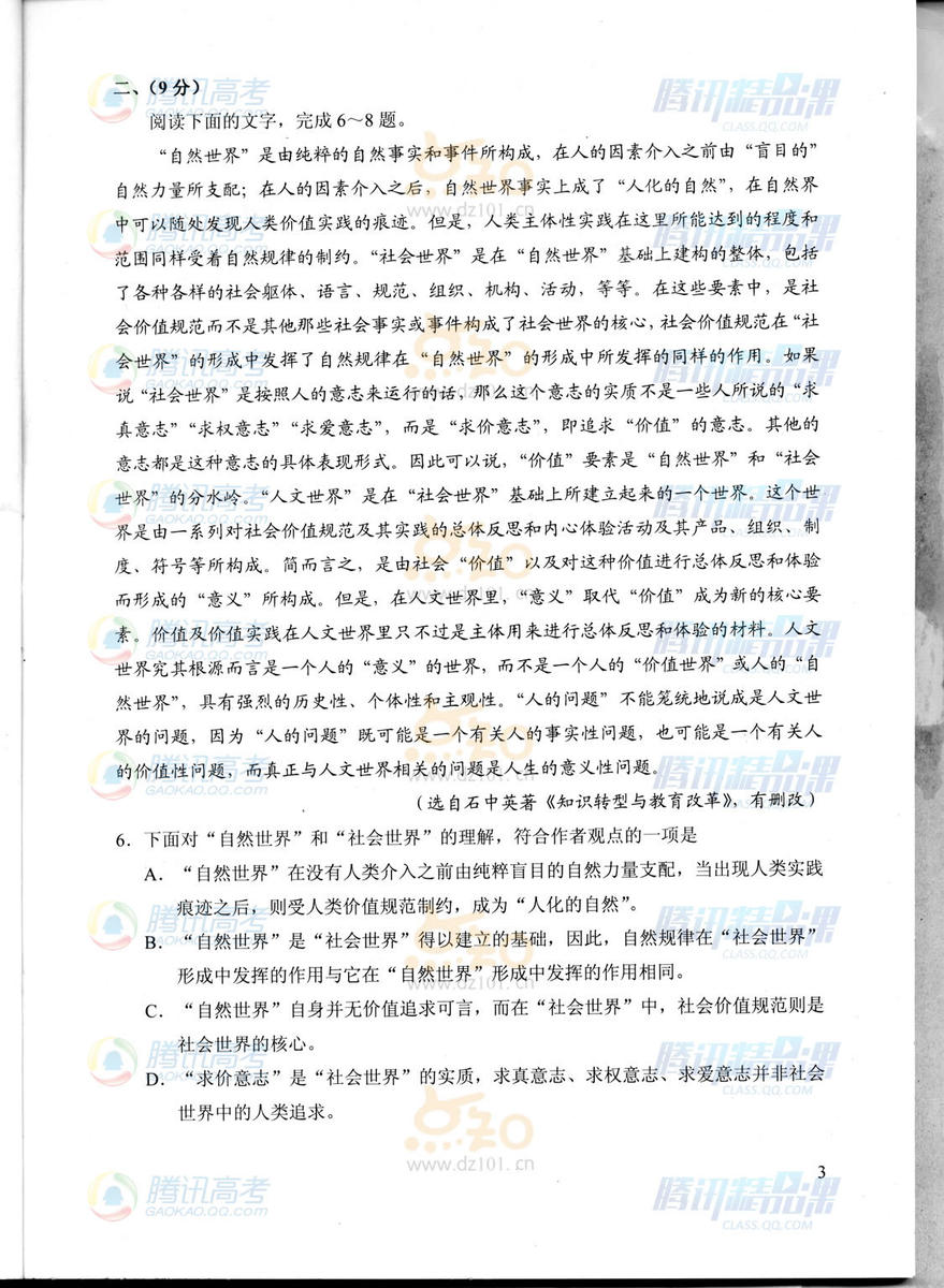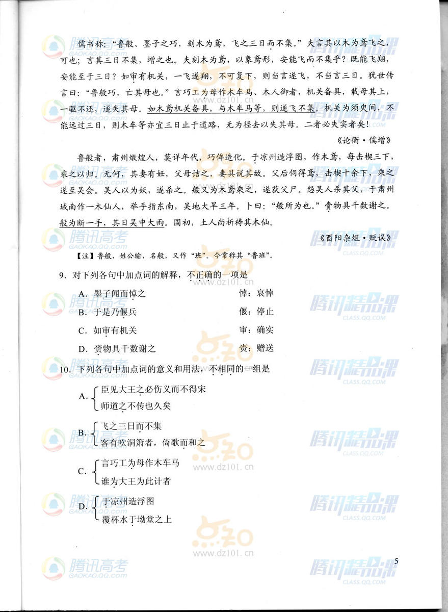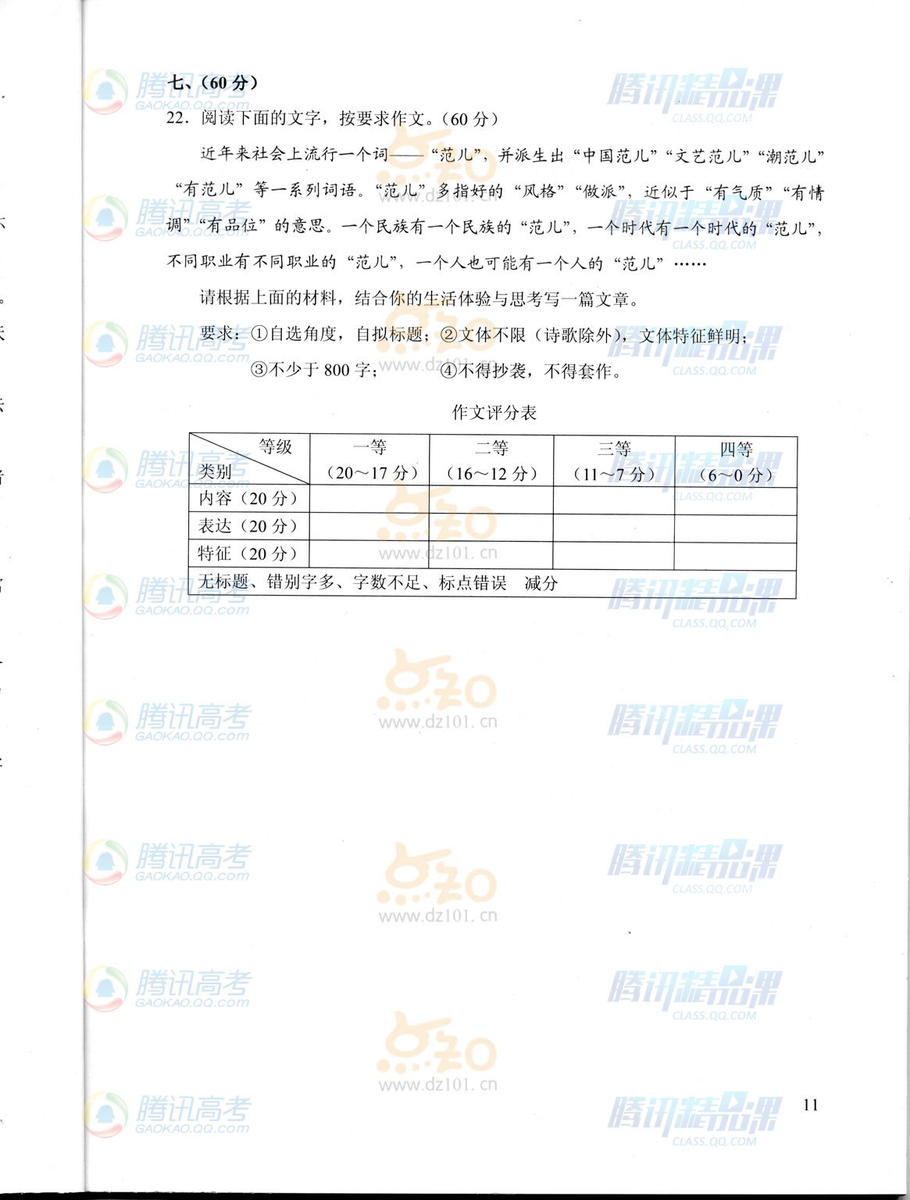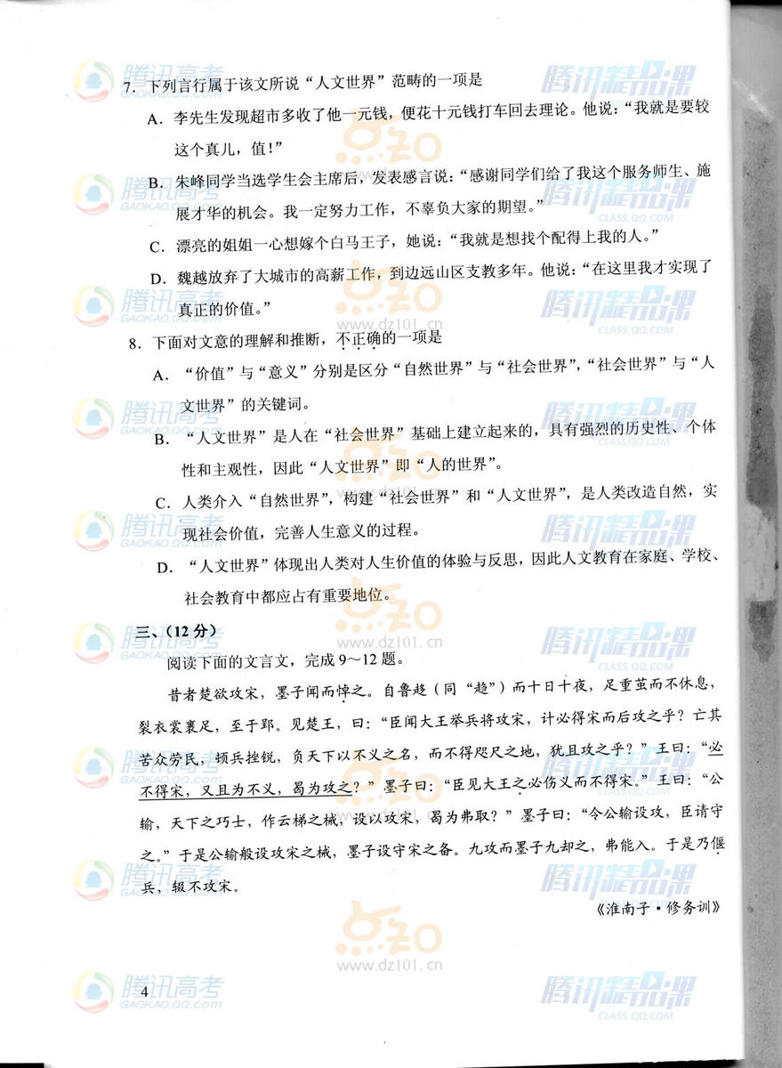 2015年天津高考語文試題(騰訊版)