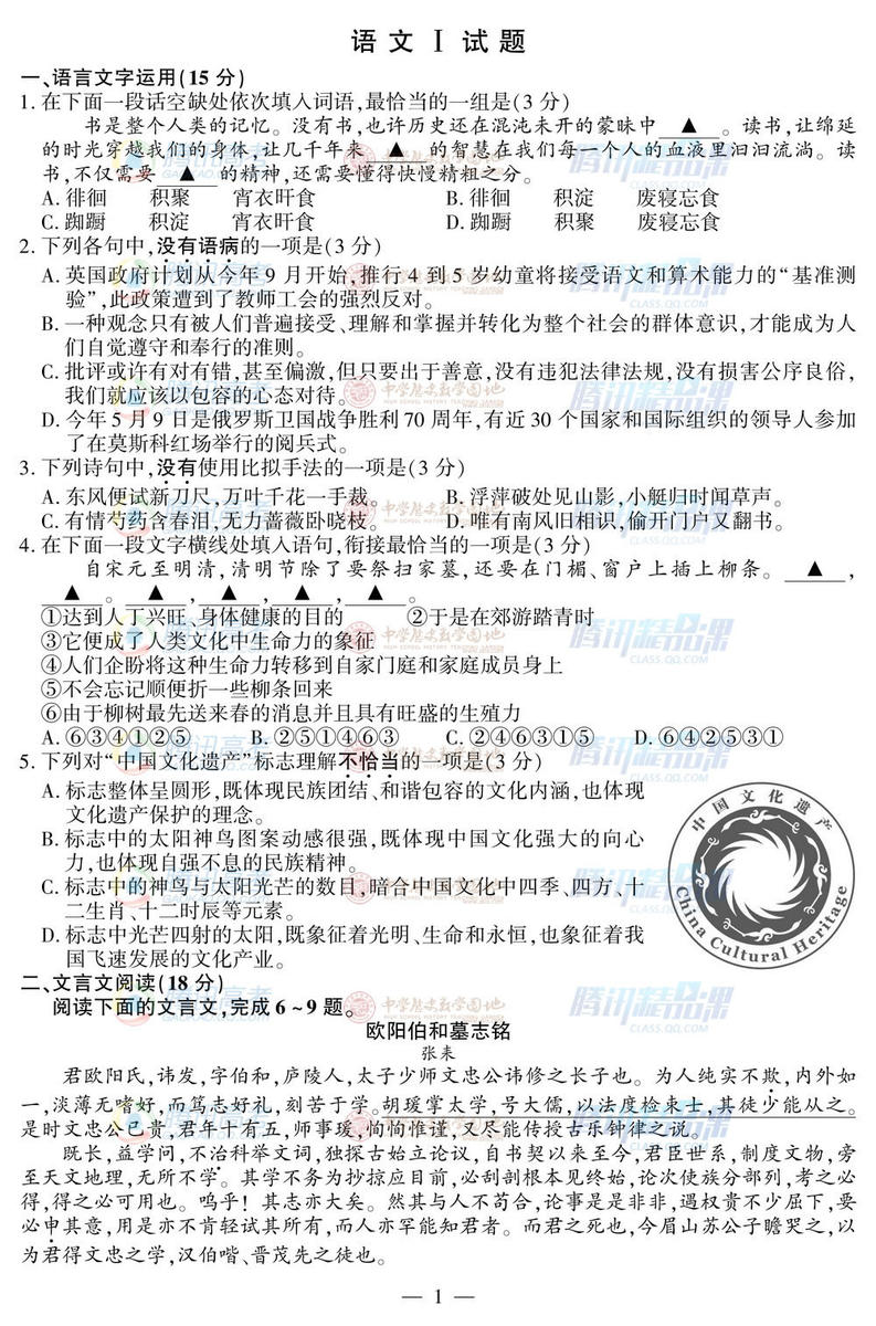 2015年江蘇高考語文試題(完整版)