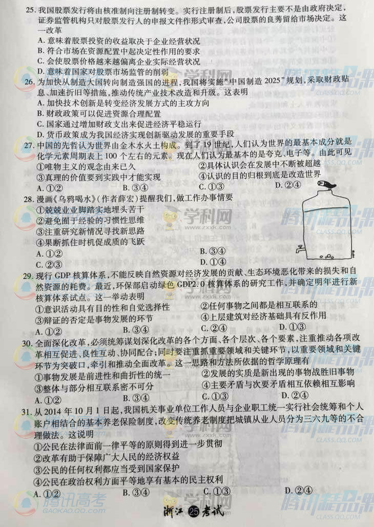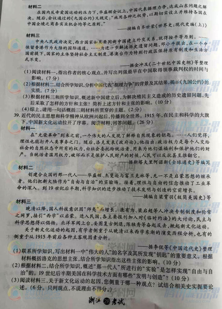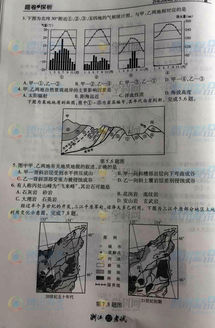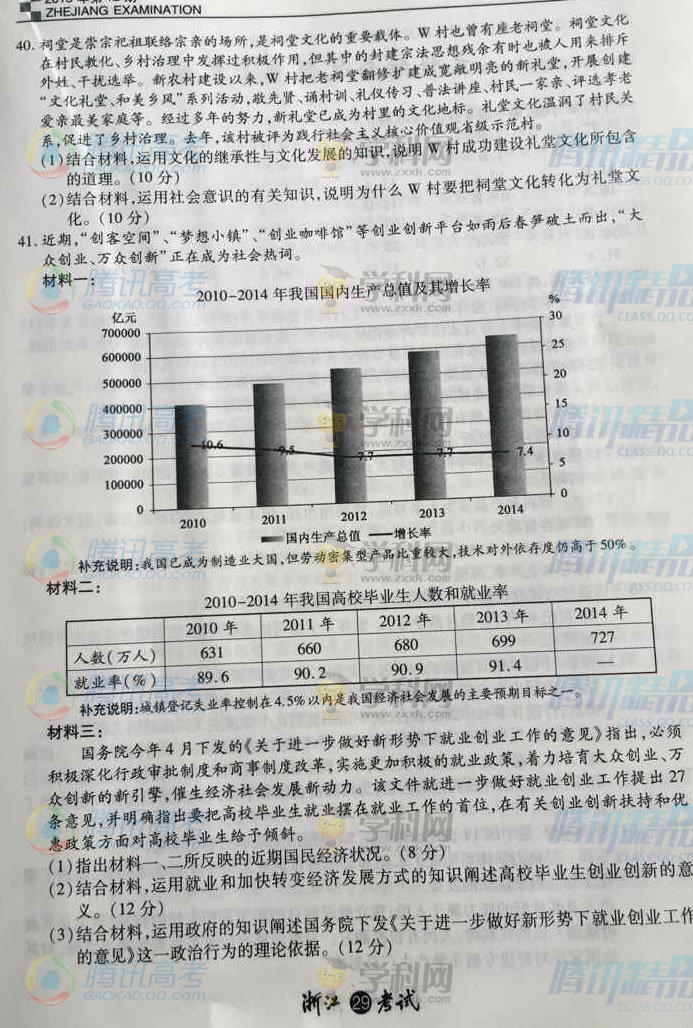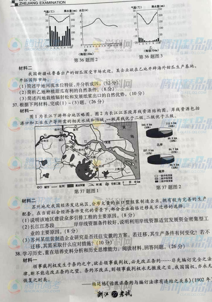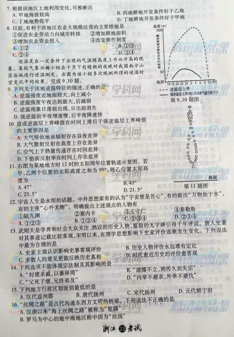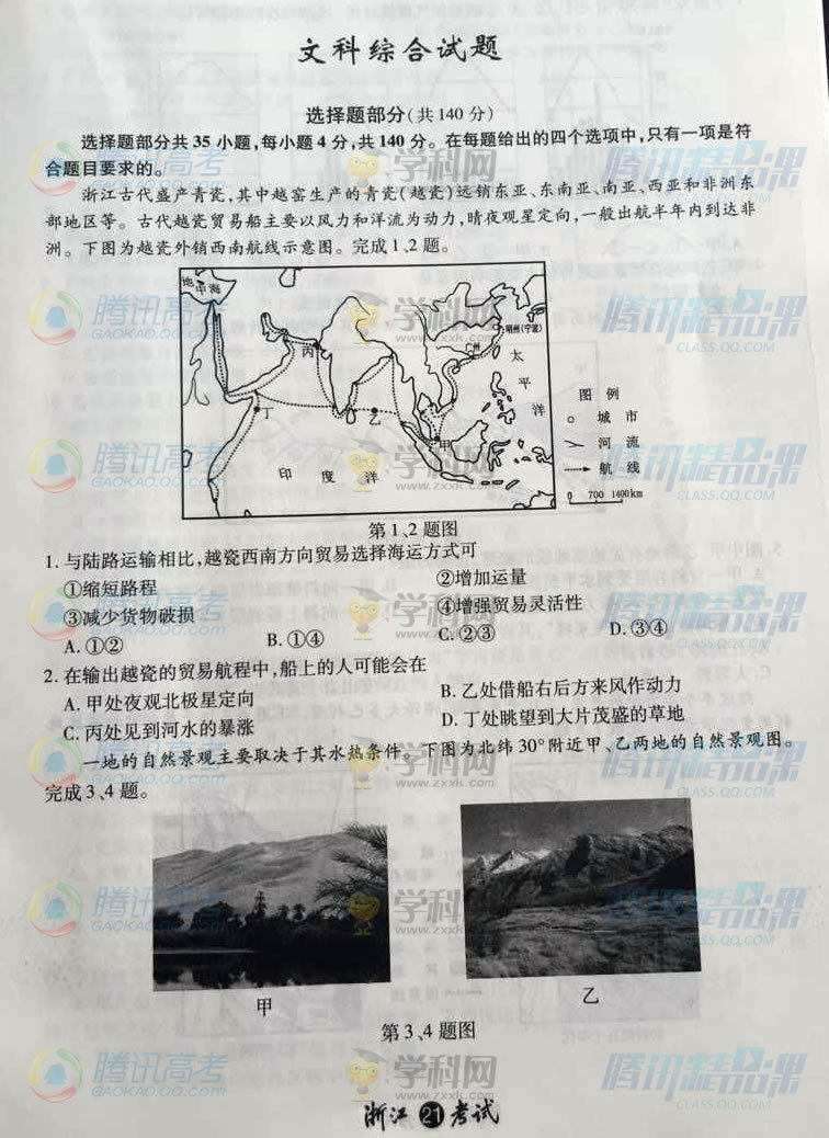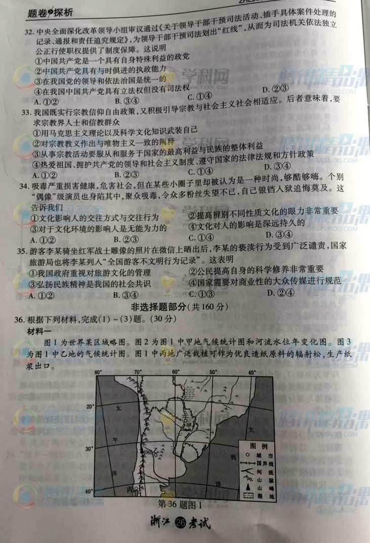 2015年浙江高考文綜試題(騰訊版)