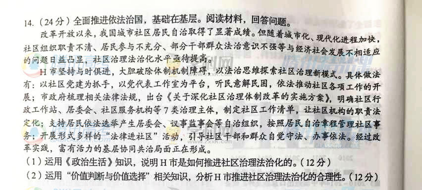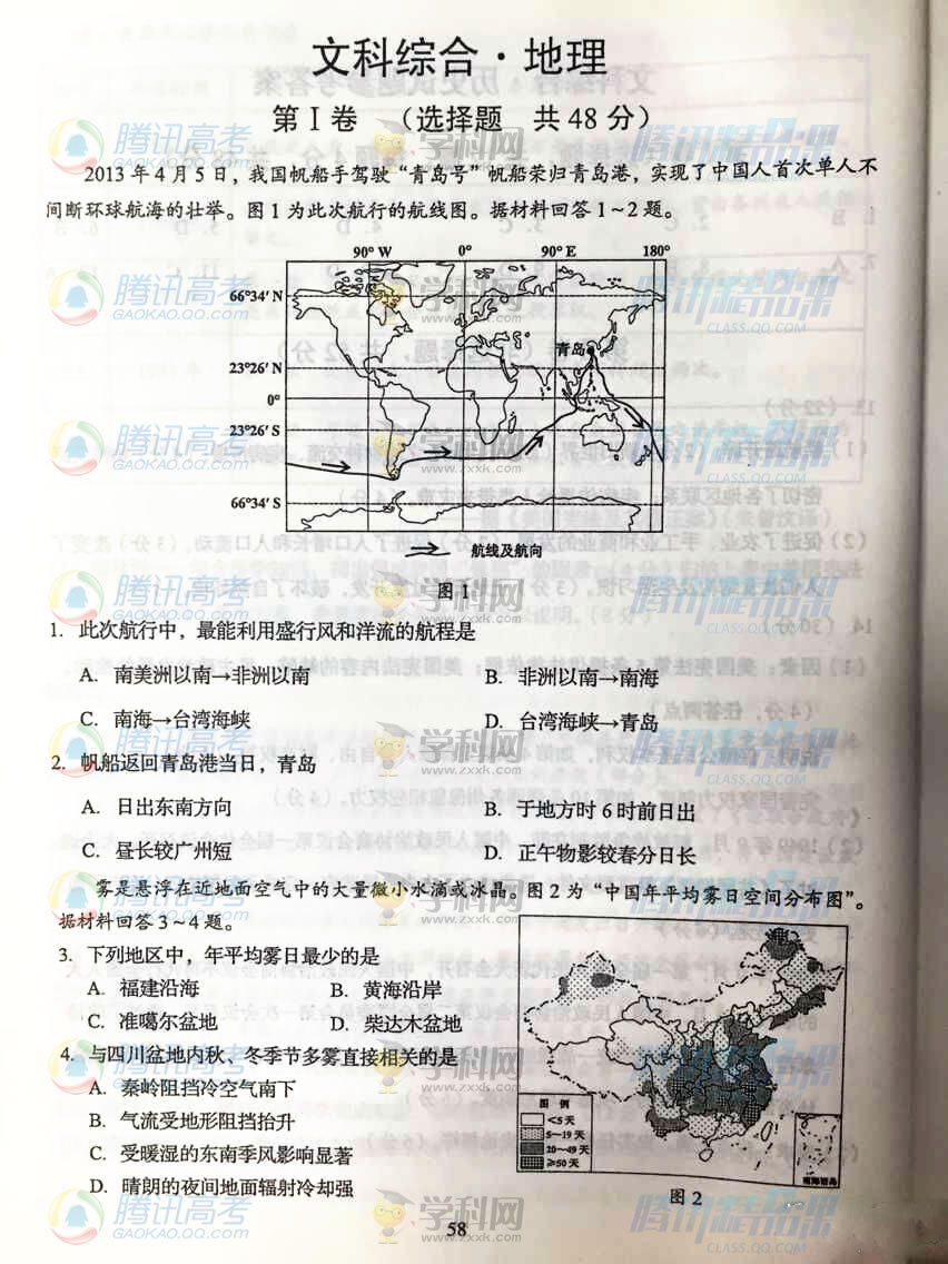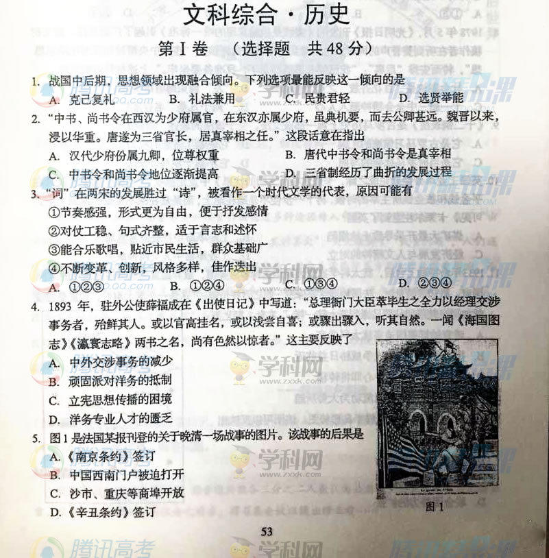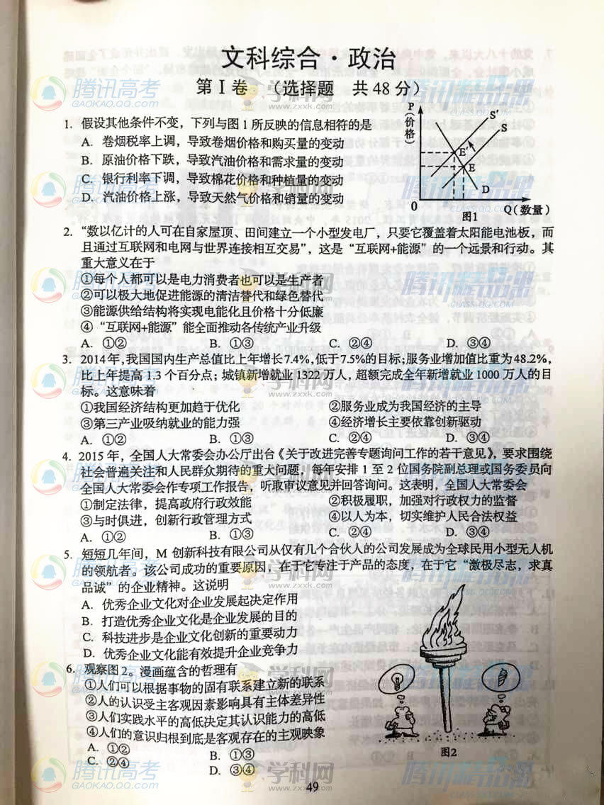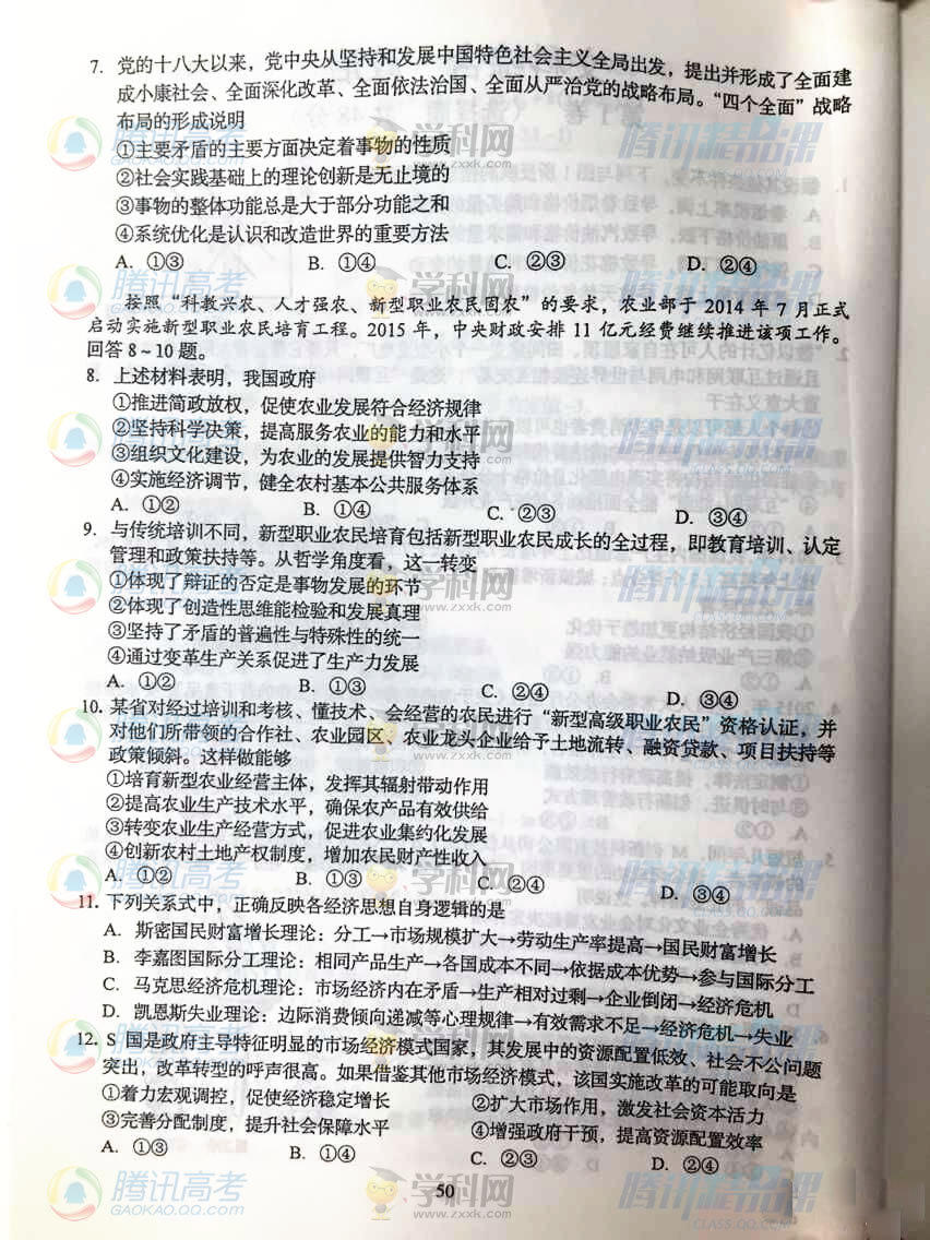 2015年四川高考文綜試題(騰訊版)