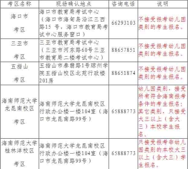 查詢中小學(xué)教師資格考試相關(guān)信息,可登錄教師資格考試網(wǎng) (http://www.ntce.cn)、海南省教育廳網(wǎng)站(http://edu.hainan.gov.cn)和海南省考試局網(wǎng)站(http://ea.hainan.gov.cn)查閱。有關(guān)政策問題,咨詢省教育廳師資管理處,電話:65232872;有關(guān)認(rèn)證問題,咨詢省教育廳行政審批辦公室,電話:65203038;有關(guān)考試問題,咨詢省考試局,電話:65851886。
