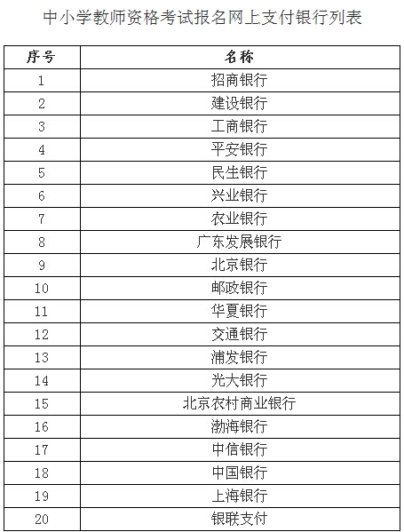 附件2:中小學(xué)教師資格考試報(bào)名網(wǎng)上支付銀行列表