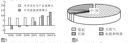 (1)能源消費與經(jīng)濟增長有著密切的關(guān)系。圖5資料表明,2001~2003年,我國能源消費出現(xiàn)的趨勢是 。扭轉(zhuǎn)這種趨勢的主要對策有: 、 。