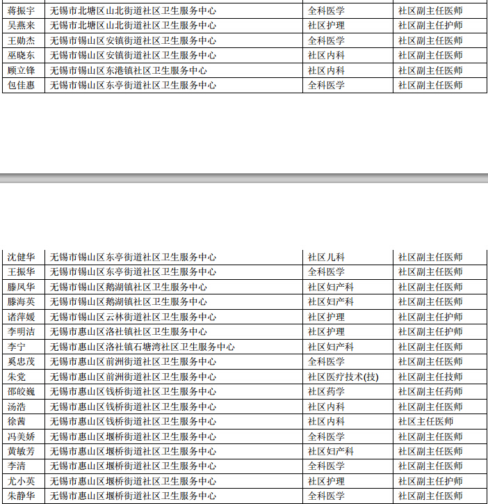 2015年江蘇衛(wèi)生高級(jí)專業(yè)技術(shù)資格評(píng)審?fù)ㄟ^(guò)人員公示名單(社區(qū))
