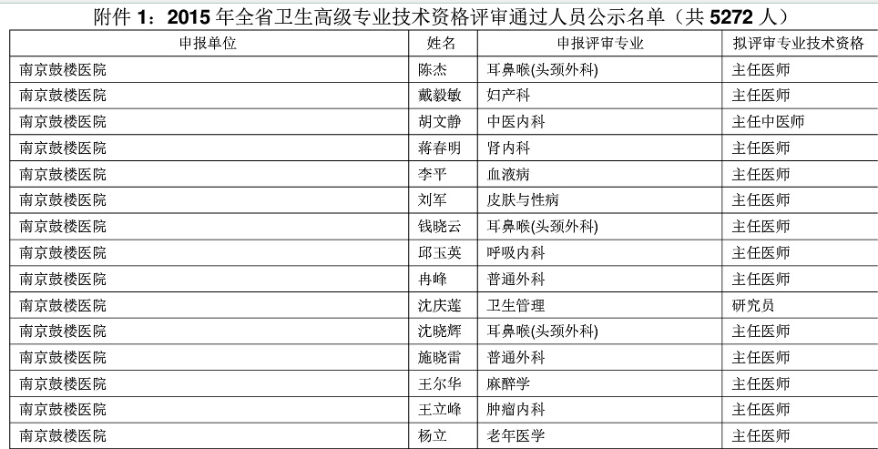 2015年江蘇衛(wèi)生高級(jí)專業(yè)技術(shù)資格評(píng)審?fù)ㄟ^人員公示名單(共5272人)