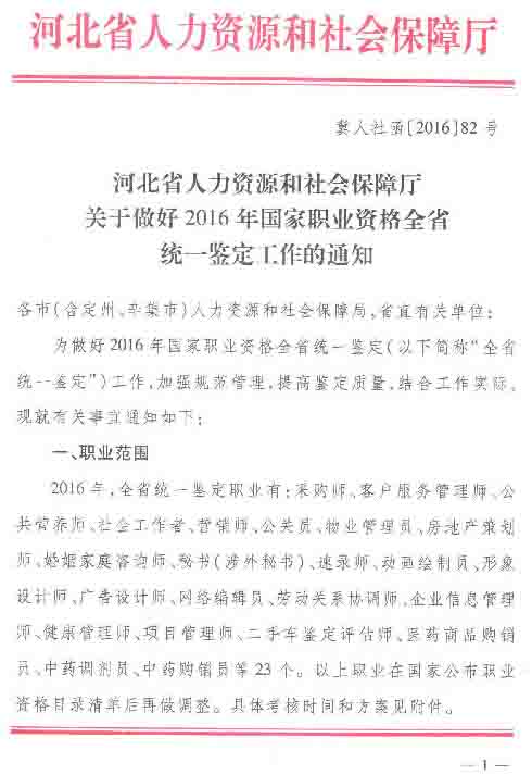 2016年河北公共營養(yǎng)師考試報名通知(省考)