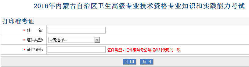2016年內(nèi)蒙古衛(wèi)生高級專業(yè)技術(shù)資格專業(yè)知識和實踐能力考試準考證打印入口