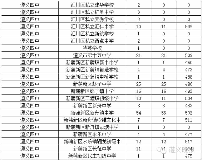 遵義四中總計(jì)劃1200人,配額生控制線460分,轄區(qū)外統(tǒng)招最低分551分,轄區(qū)內(nèi)統(tǒng)招分?jǐn)?shù)線539分,合計(jì)錄取人數(shù)1200人。