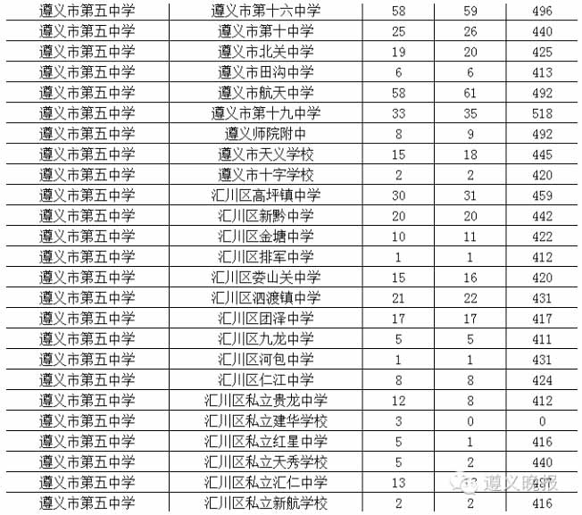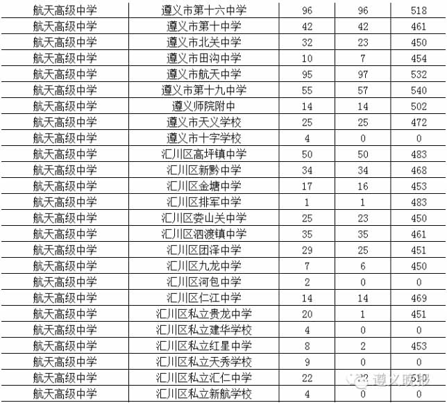 附注:2016年遵義市示范高中配額生統(tǒng)計(jì)表(部分)