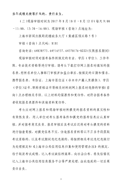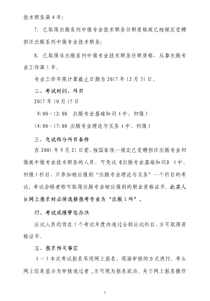2017年上海出版專業(yè)技術人員職業(yè)資格考試考務工作安排
