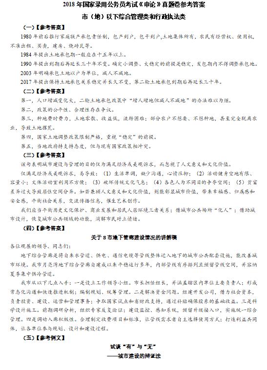 【#公務(wù)員考試# #2018年國(guó)家公務(wù)員考試申論答案解析(地市級(jí))#】2018年國(guó)家公務(wù)員考試行測(cè)已于2017年12月10日落下帷幕,®無(wú)憂考網(wǎng)在考后第一時(shí)間從網(wǎng)絡(luò)搜羅整理了2018年國(guó)家公務(wù)員考試申論答案解析(地市級(jí))供廣大考生參考。