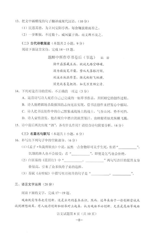 【#高考# #2018年全國(guó)卷II高考語(yǔ)文試題(已公布)#】2018年全國(guó)卷Ⅱ高考語(yǔ)文考試已于6月7日落下帷幕,©無(wú)憂考網(wǎng)高考頻道在考后從網(wǎng)絡(luò)搜羅整理并發(fā)布了2018年全國(guó)卷Ⅱ高考語(yǔ)文試題,供各位考生學(xué)習(xí)參考,在此預(yù)祝大家取得優(yōu)異的成績(jī)。