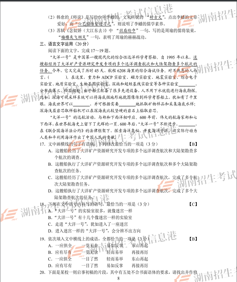 【#高考# #2018年全國(guó)卷I高考語(yǔ)文答案(已公布)#】2018年北京高考語(yǔ)文考試已結(jié)束,同時(shí)2018年全國(guó)卷I高考語(yǔ)文答案已公布,©無(wú)憂考網(wǎng)高考頻道特別整理了2018年全國(guó)卷I高考語(yǔ)文答案信息,預(yù)祝大家取得優(yōu)異的成績(jī)。