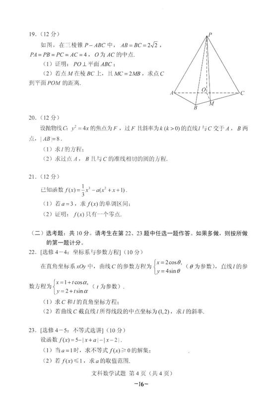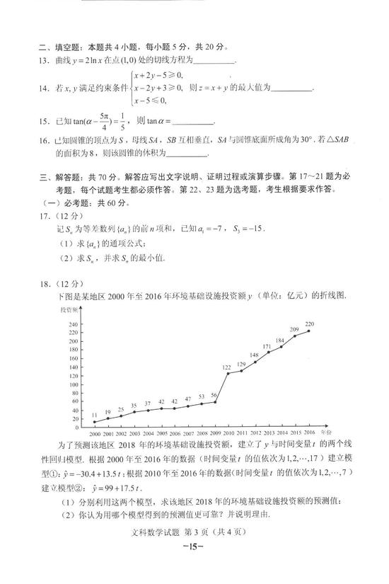 2018年全國(guó)卷II高考數(shù)學(xué)試題:數(shù)學(xué)文(已公布)