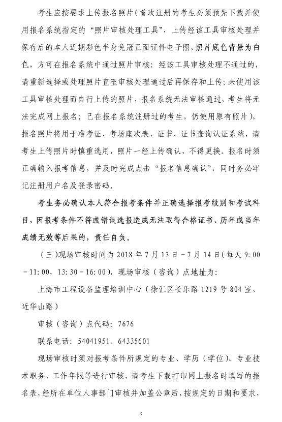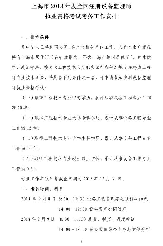 【#設(shè)備監(jiān)理師# #2018年上海注冊設(shè)備監(jiān)理師資格考試考務(wù)工作通知#】©無憂考網(wǎng)從上海職業(yè)能力考試院獲悉,2018年上海設(shè)備監(jiān)理師報考工作現(xiàn)已開始,報名時間:7月3日-14日,考試時間:9月8日、9日,更多事宜請參考閱讀《考務(wù)通知》,官方公告原文如下: